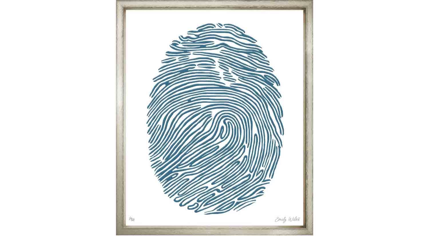 An eye-catching piece for any art collection, Blue Fingerprints 1 gives an up-close look at a fingerprint’s unique characteristics and details.