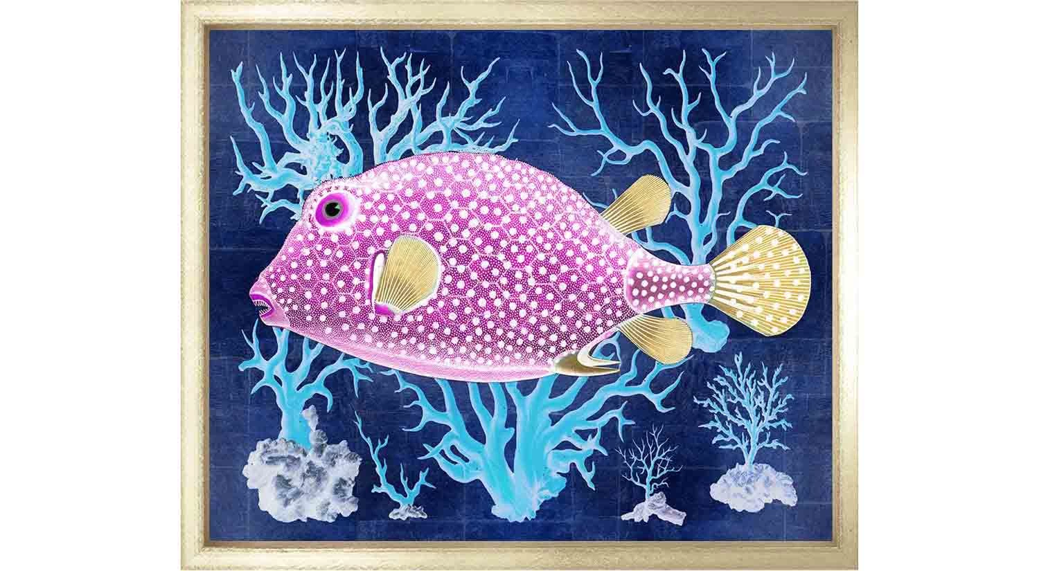 Bright Fish ll is a beautifully bold depiction of what can be found below the ocean surface, revealing a colorful fish swimming by vibrant corals.