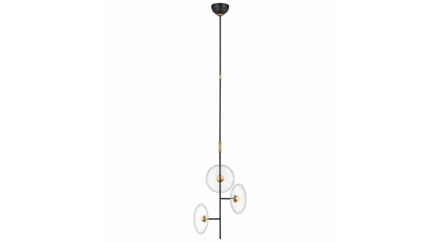 The Calvino Mini Chandelier will hang effortlessly in your home. Its three lights are topped with clear glass shades in contrast with an aged iron and antique brass finish to enhance a simple yet polished design.
