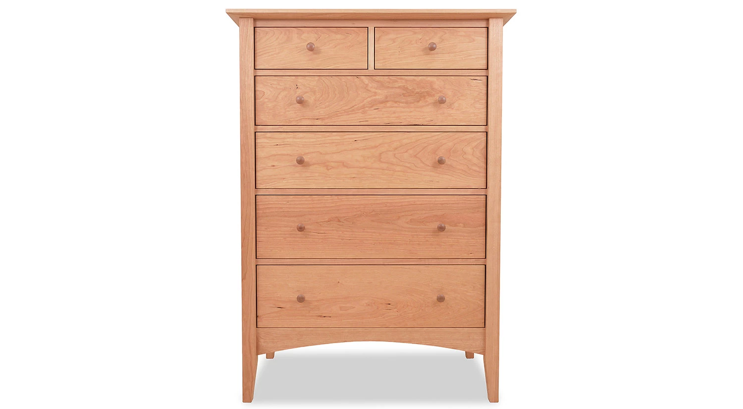 Spacious and sturdy, the Canterbury 6 Drawer Chest features a pair of shallow drawers at the top followed by four deeper ones below. It comes with a standard single extension slide or a full-extension soft close slide, and you can choose from cherry, maple, or walnut wood to complete your piece.