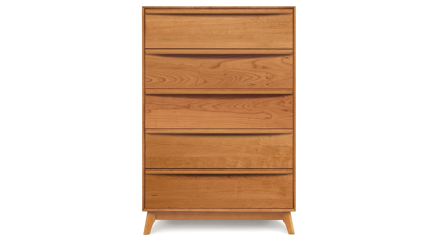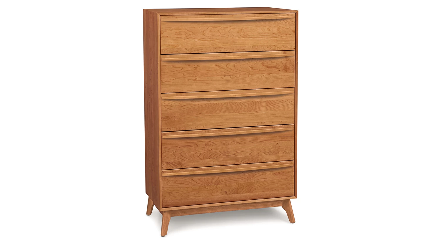 The Catalina 5 Drawer Wide Dresser features soft-close, self-close drawer glides.