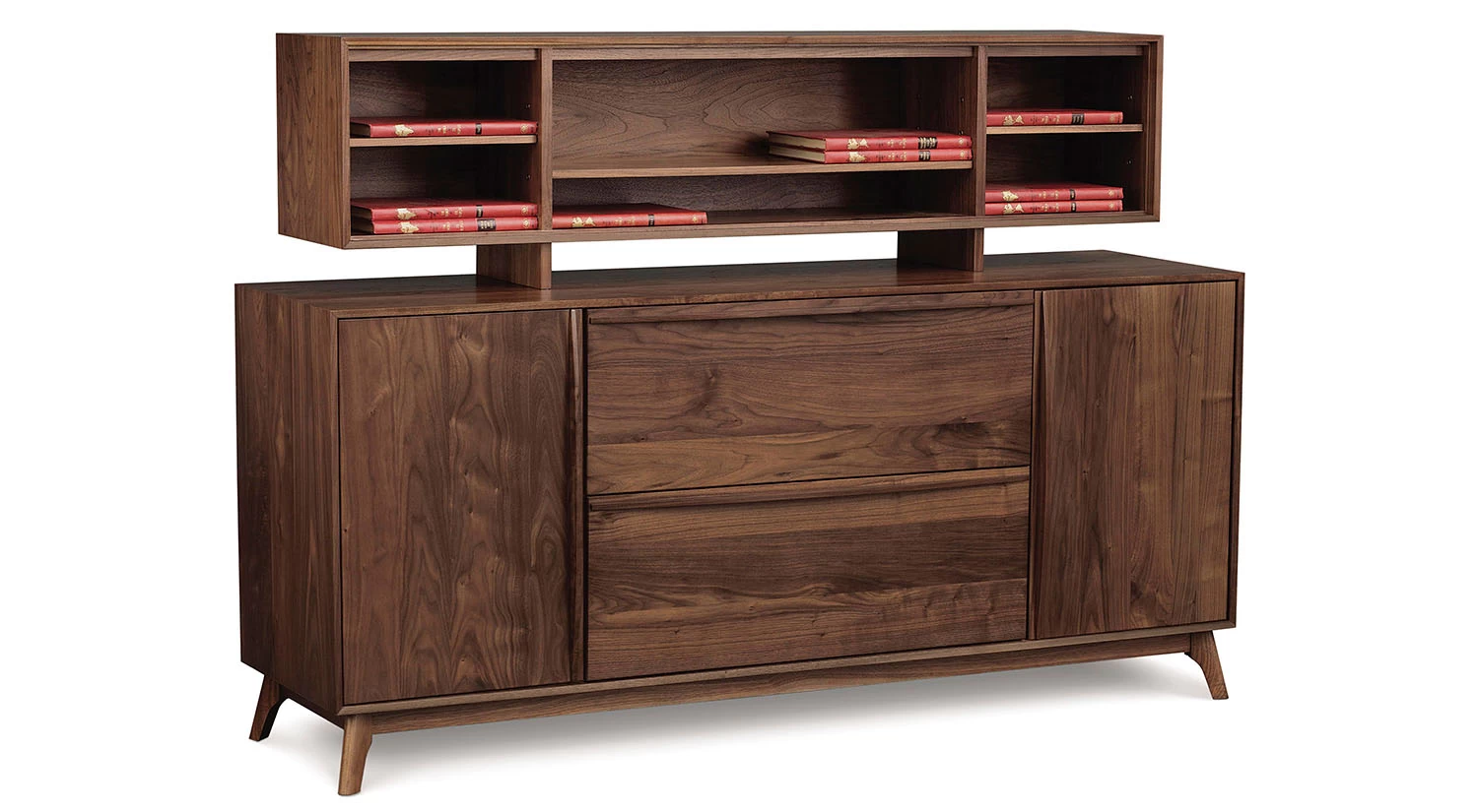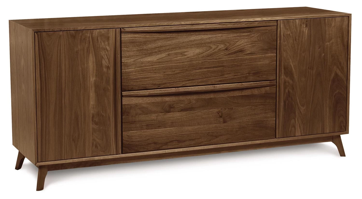 The Catalina Credenza utilizes Mid-Century Modern Design for a clean retro-modern look. Crafted from American Black walnut by Copeland Furniture in Vermont, the Catalina offers a sleek storage option for your home office.