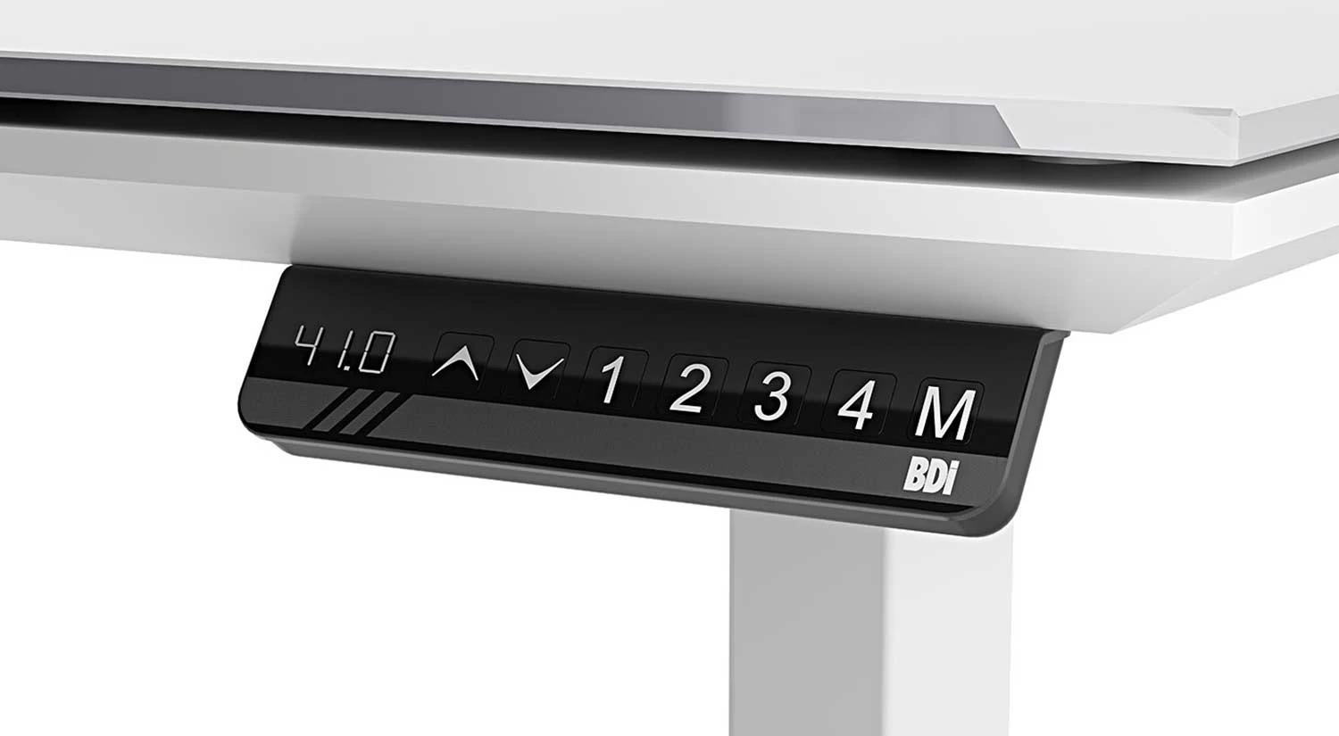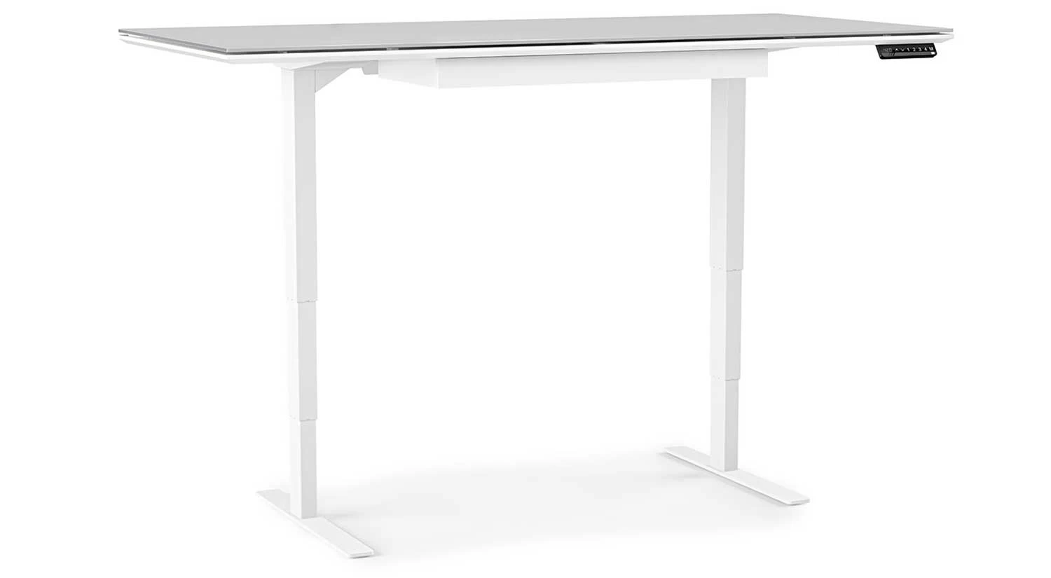 Stay in motion with the Centro Lift desk. This height adjustable desk features a powered leg system controlled by a digital, programmable keypad. Whether sitting, standing or somewhere in-between, your work surface is always at the perfect height. The top is made of a grey microetched glass and has a built in wire management system. Add an optional drawer for more storage.