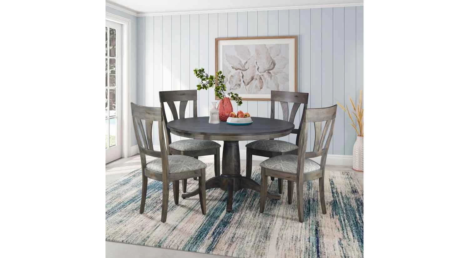The Chelsea Dining Table is made of solid maple wood. It has a graceful line and is available in round, square, rectangle, or boat shape.