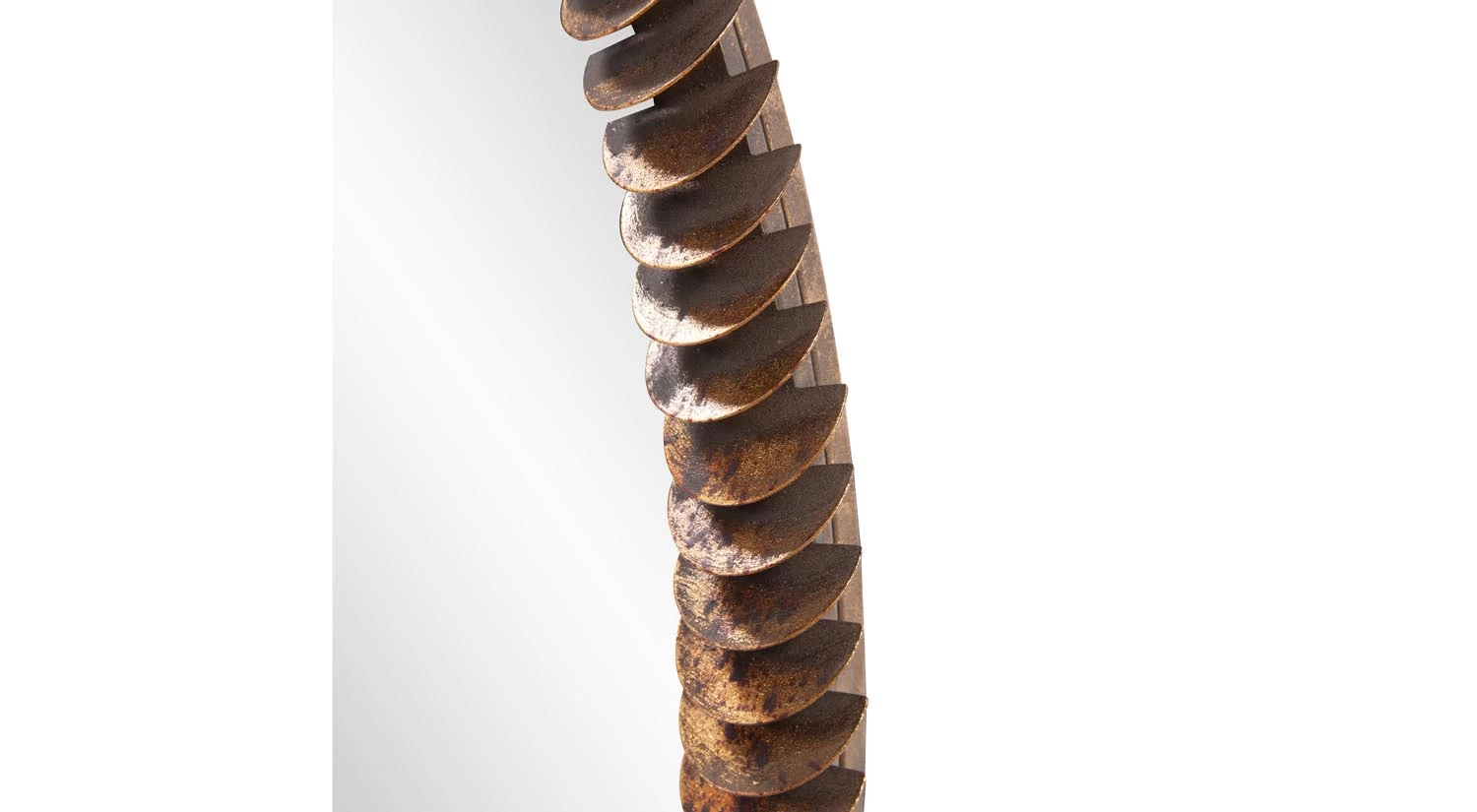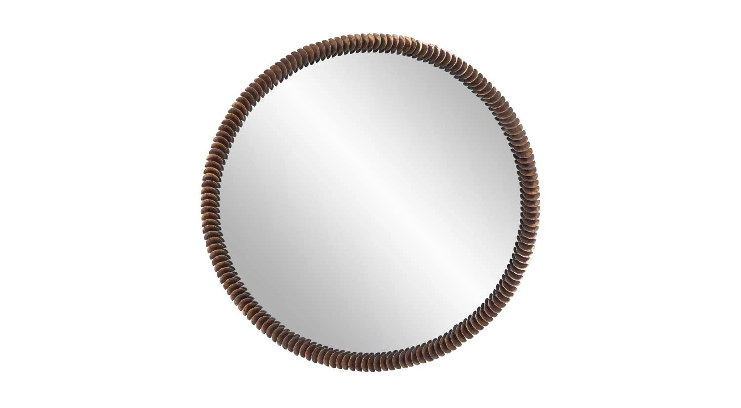 The Coined Round Mirror looks like a treasured antique. Small, weathered metal discs embellish its frame, adding visual appeal to the space above your sofa, bathroom sink, or a hallway.
