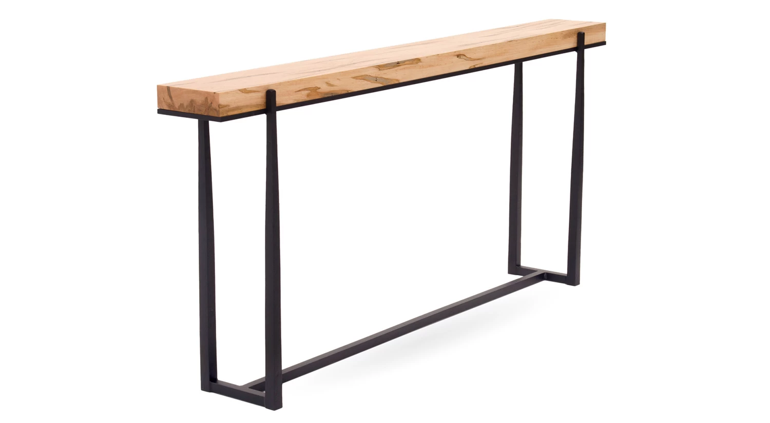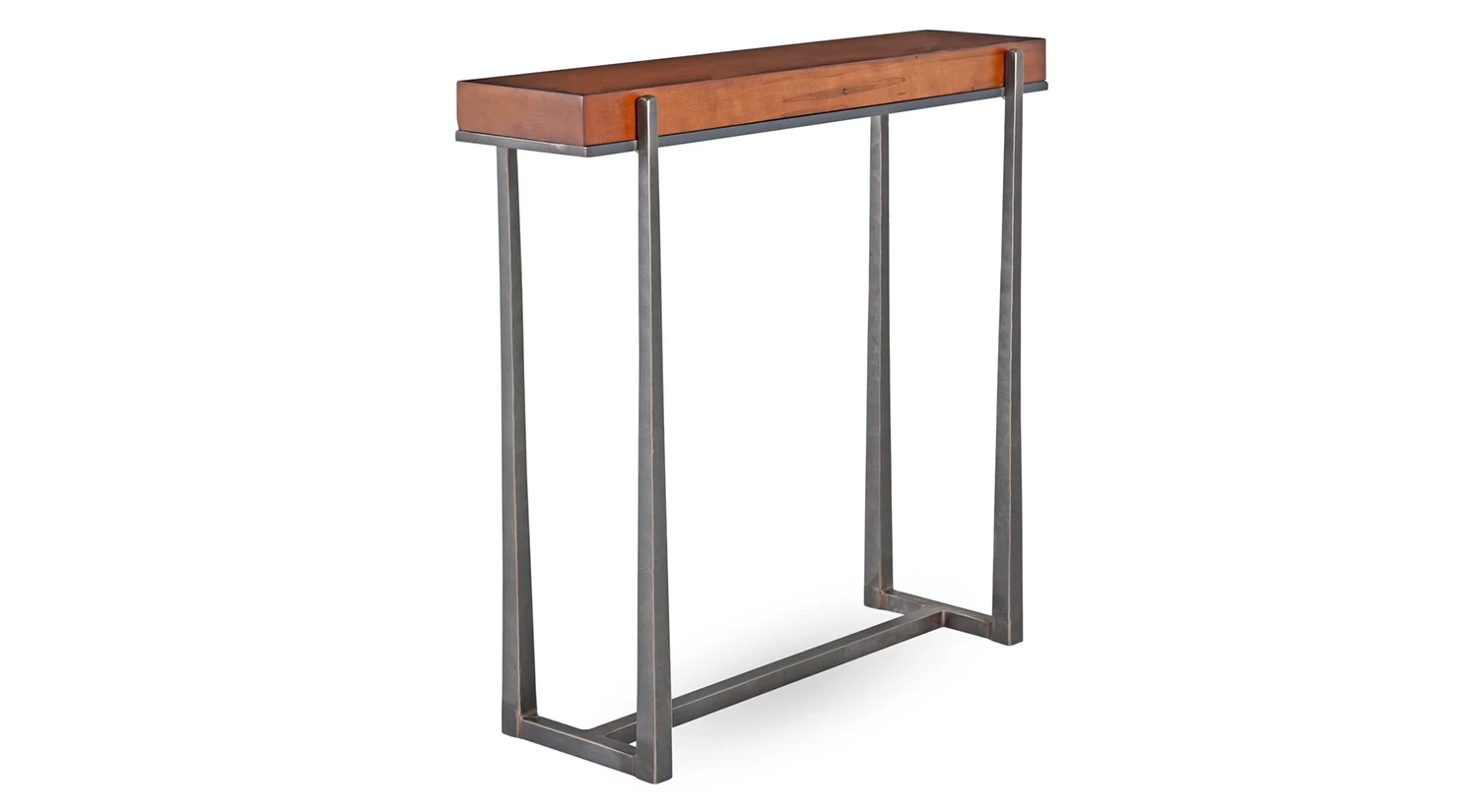 The hand-forged legs of the Cooper Console Table have a subtle texture that plays up the natural look of the steel. Its one-of-a-kind styling makes for a sophisticated accent in any living space.