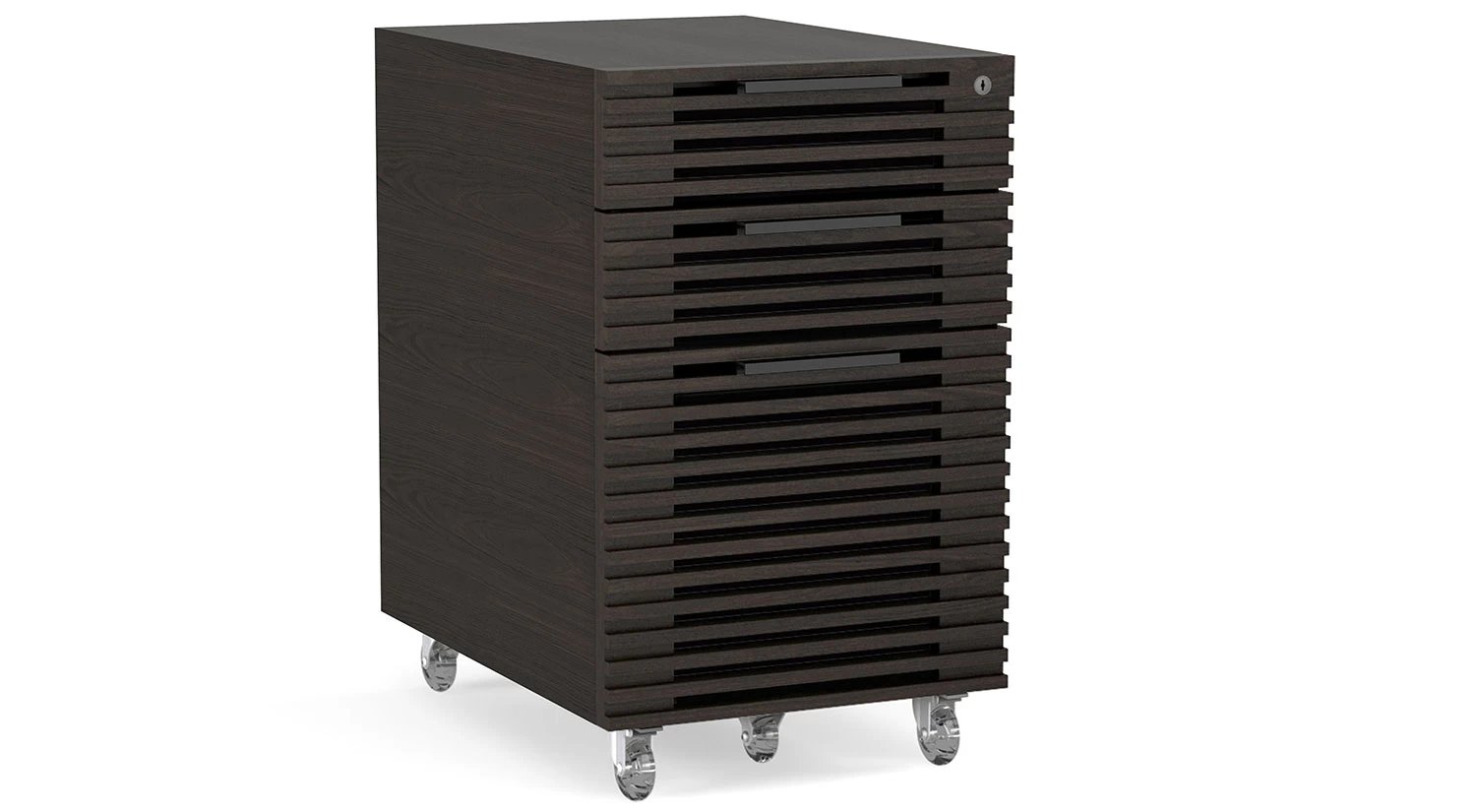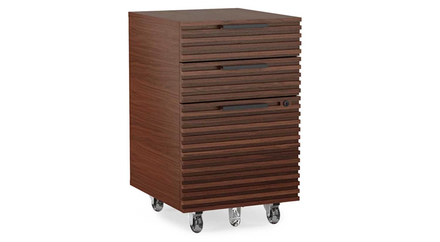 The Corridor Mobile File Cabinet ensures efficiency and organization with three louvered drawers – two storage and one file drawer – all secured by one lock. It fits neatly underneath the Corridor Desk for easy access to supplies and files.