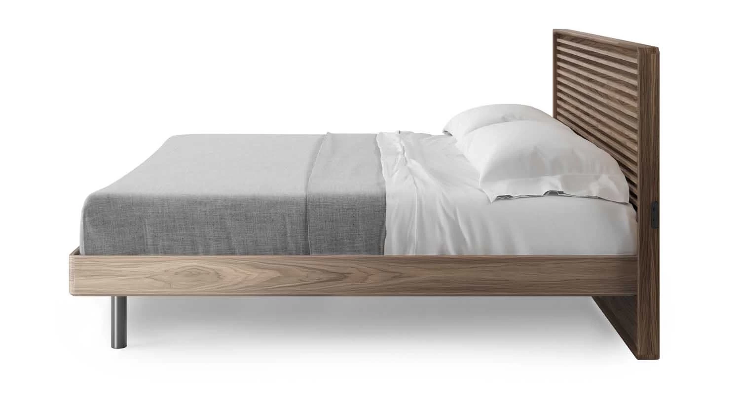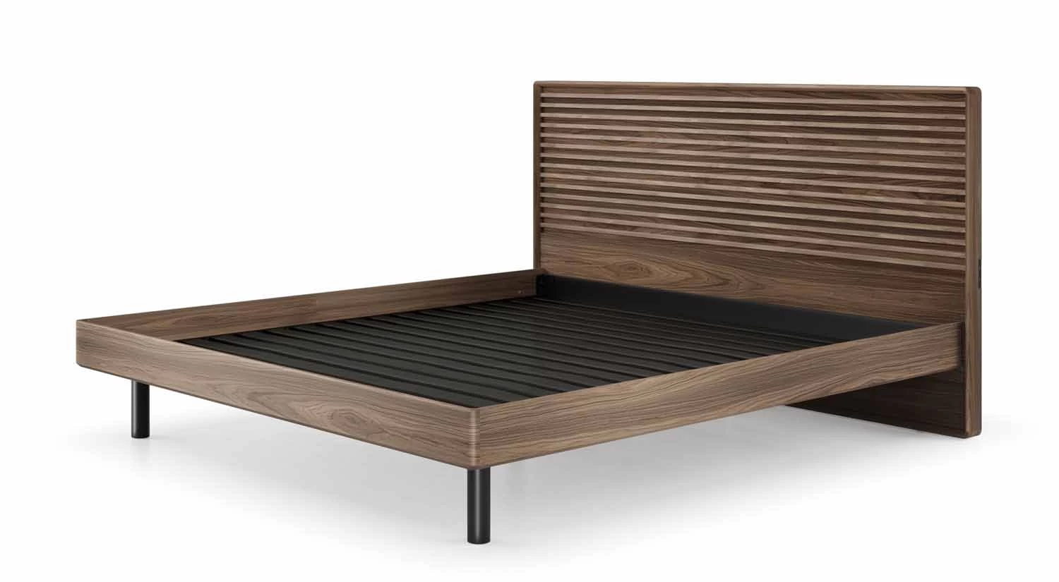 With its thoughtful design and minimalist aesthetic, the Cross-Linq Bed has been built for our modern world. Two charging stations are discreetly placed on either side of the slatted headboard, allowing you to recharge your electronics overnight so they’re ready to go the next morning. Contoured edges and recessed legs prevent painful run-ins with the bed and add an understated elegance that goes beautifully in any bedroom.