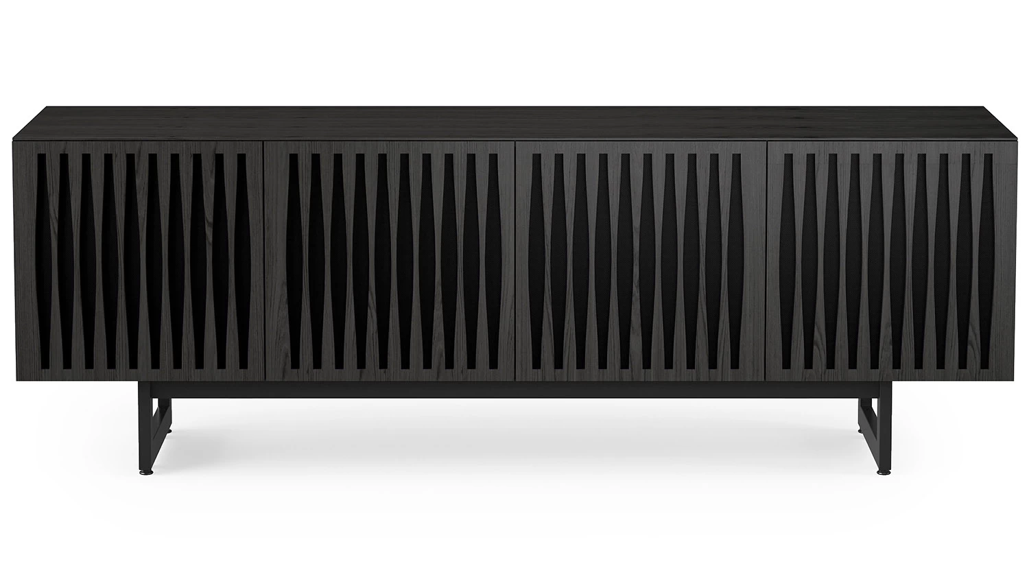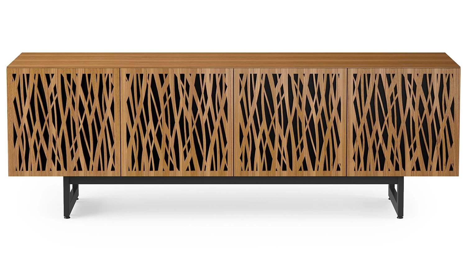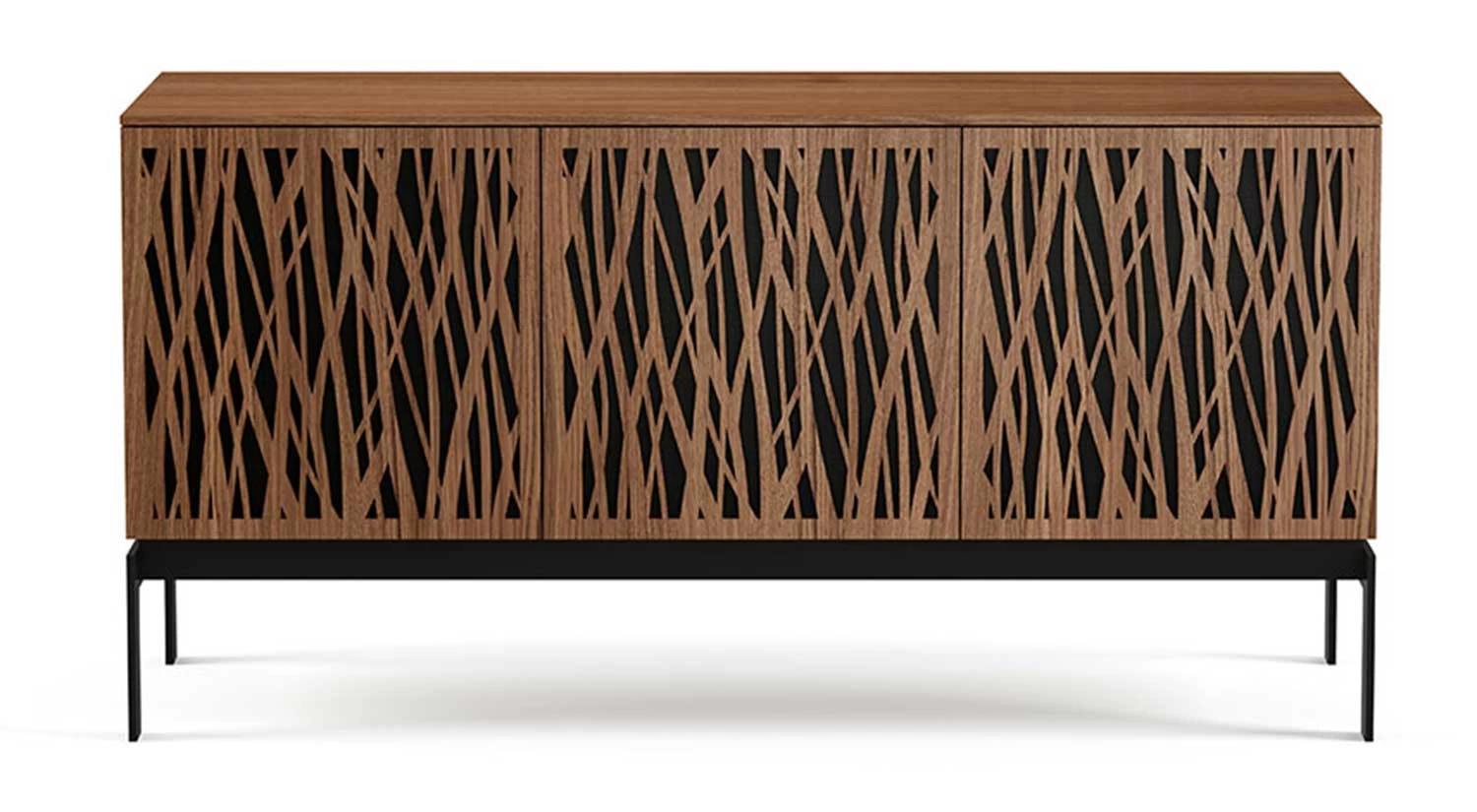 The Elements Media Console is the perfect modern storage solution for your living space. Doors showcase precise, intricate patterns and conceal contents inside the console while providing ventilation and remote control access. Hidden wheels in the base help this elegant piece maintain a low profile and integrated wire management keeps everything neat and tidy.