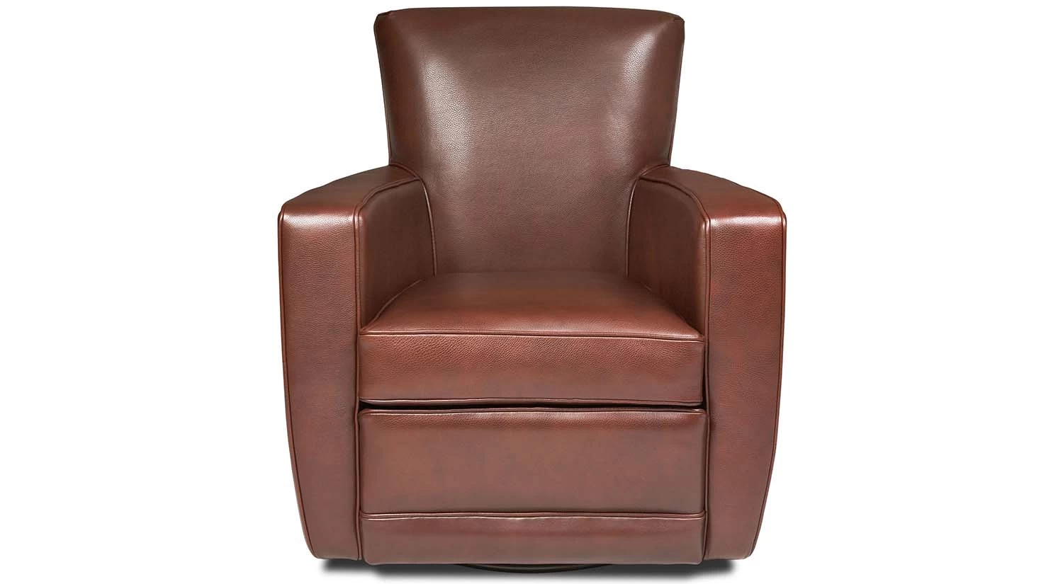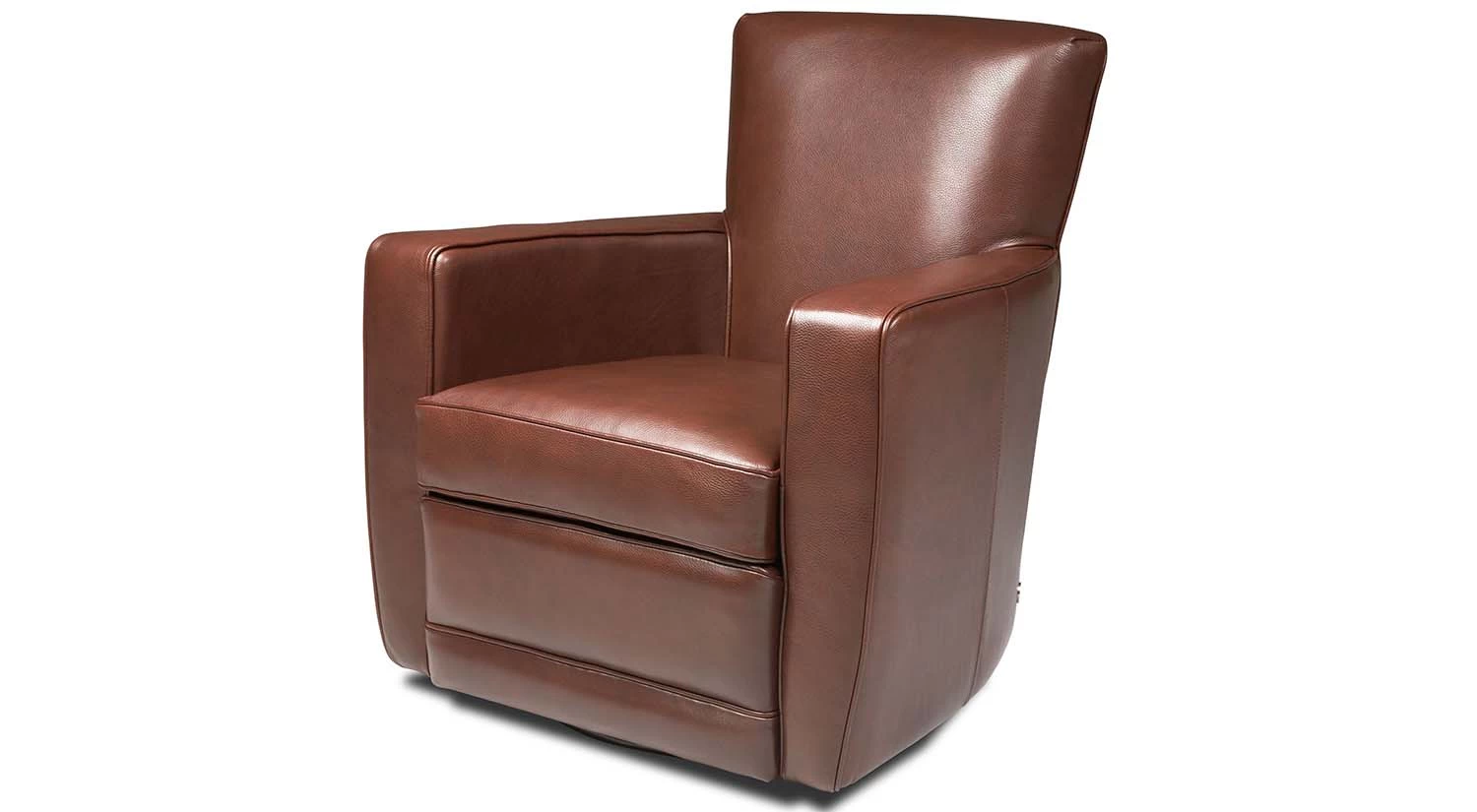 Give your space an added element of comfort with the Ethan Swivel Chair. Its barrel-shaped back and deep seat create a relaxed space for you to settle into. Pick your leather or fabric of choice and a wood stain for the base to achieve just the look you want. You can also pair the Ethan Swivel Chair with a matching ottoman.