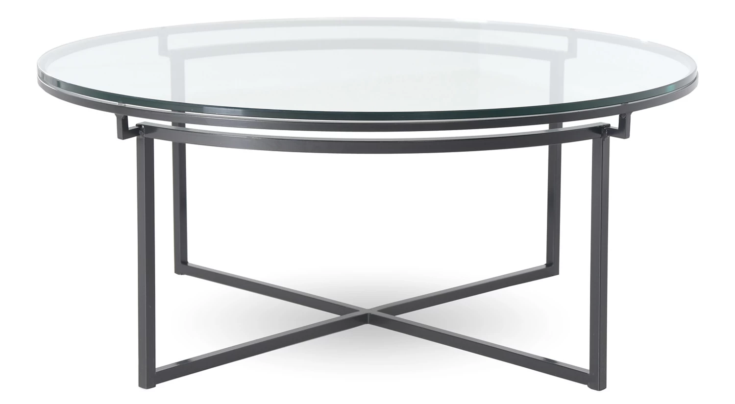 The Fillmore Round Cocktail Table by Charleston Forge is hand-built with a solid steel base and clean, precise lines.