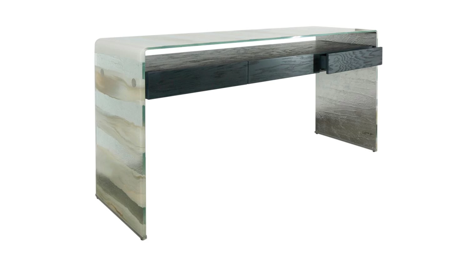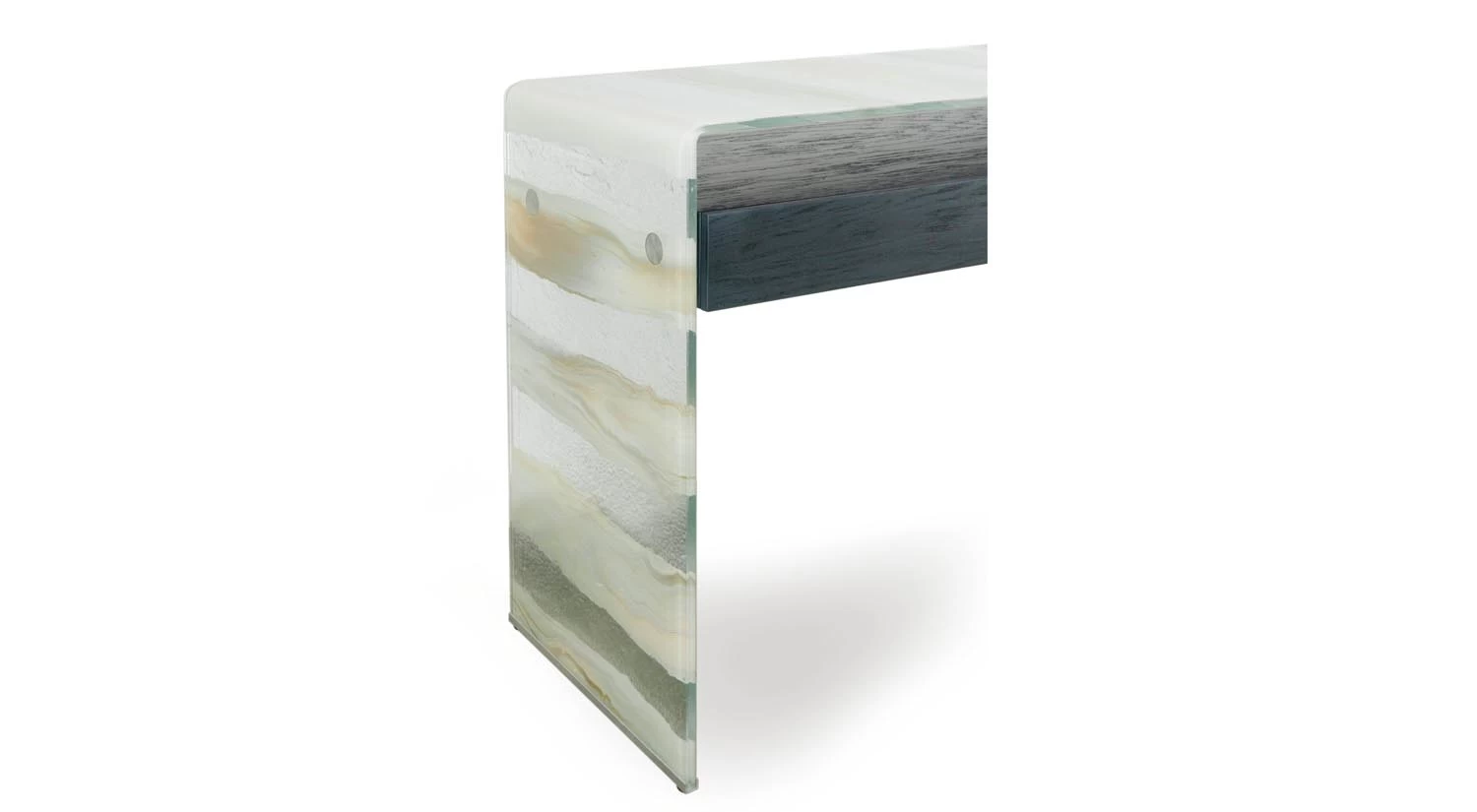 A piece like the Graffetta Console is meant to impress. Its waterfall-style design creates a smooth, effortless look that stuns from any angle while two small drawers offer storage. This console will stand beautifully in any entryway, dining room, or living area.