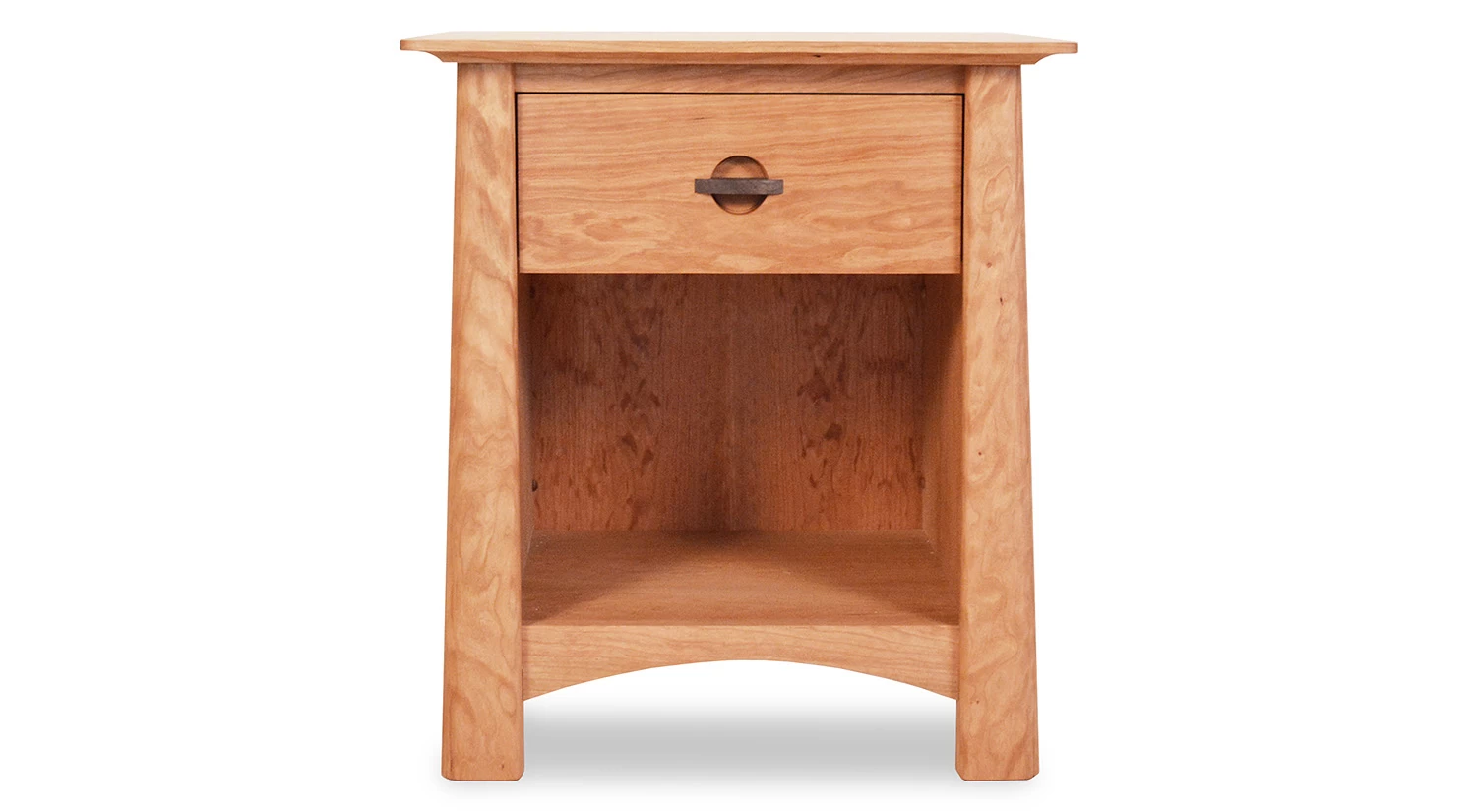 The Harvestmoon 1 Drawer Nightstand from Maple Corner is handcrafted in Vermont from solid wood. Each piece of wood is hand-selected to design a consistent and beautiful piece.