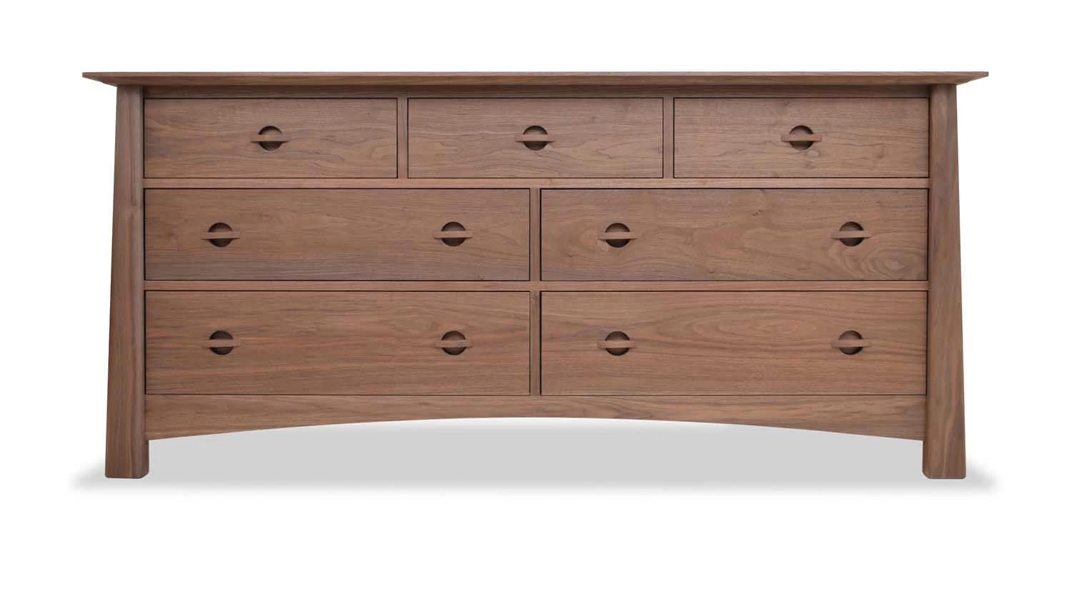 The Harvestmoon 7 Drawer Dresser from Maple Corner is handcrafted in Vermont from solid wood. Each piece of wood is hand-selected to design a consistent and beautiful piece.