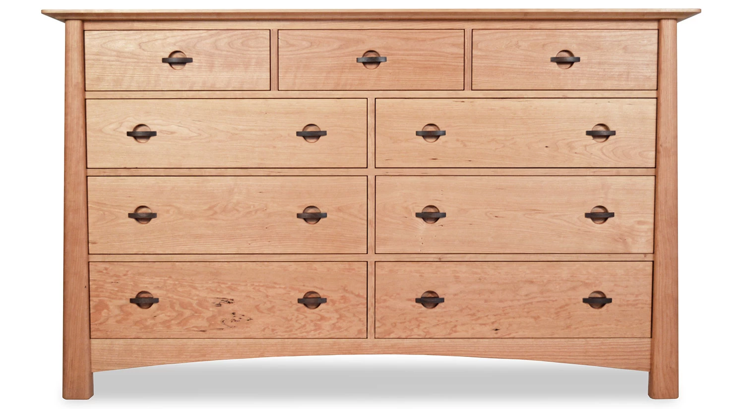 The Harvestmoon 9 Drawer Dresser from Maple Corner is handcrafted in Vermont from solid wood. Each piece of wood is hand-selected to design a consistent and beautiful piece.