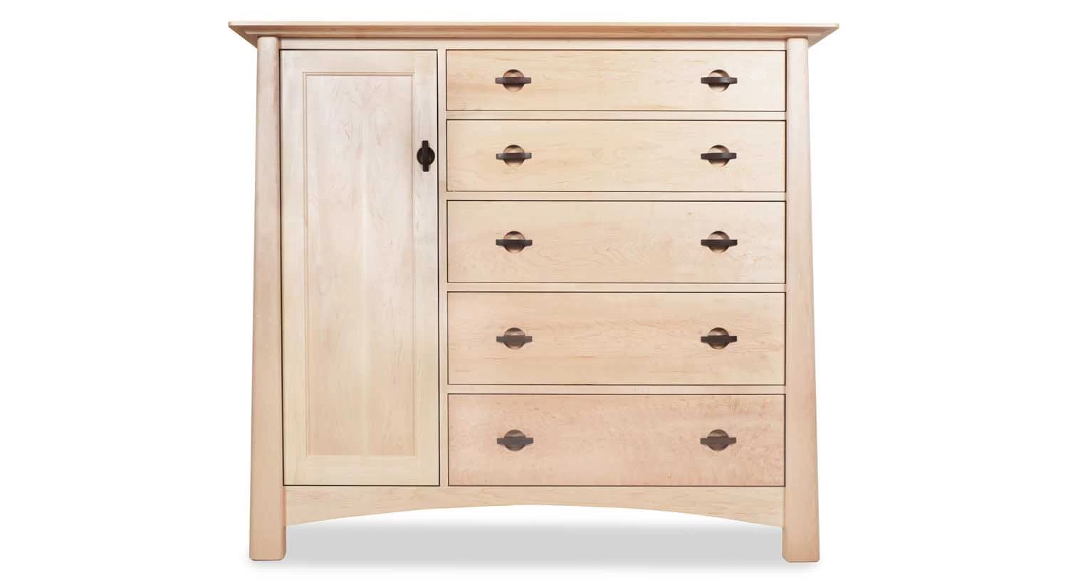 The Harvestmoon Gent’s Chest from Maple Corner is handcrafted in Vermont from solid wood. Each piece of wood is hand-selected to design a consistent and beautiful piece.