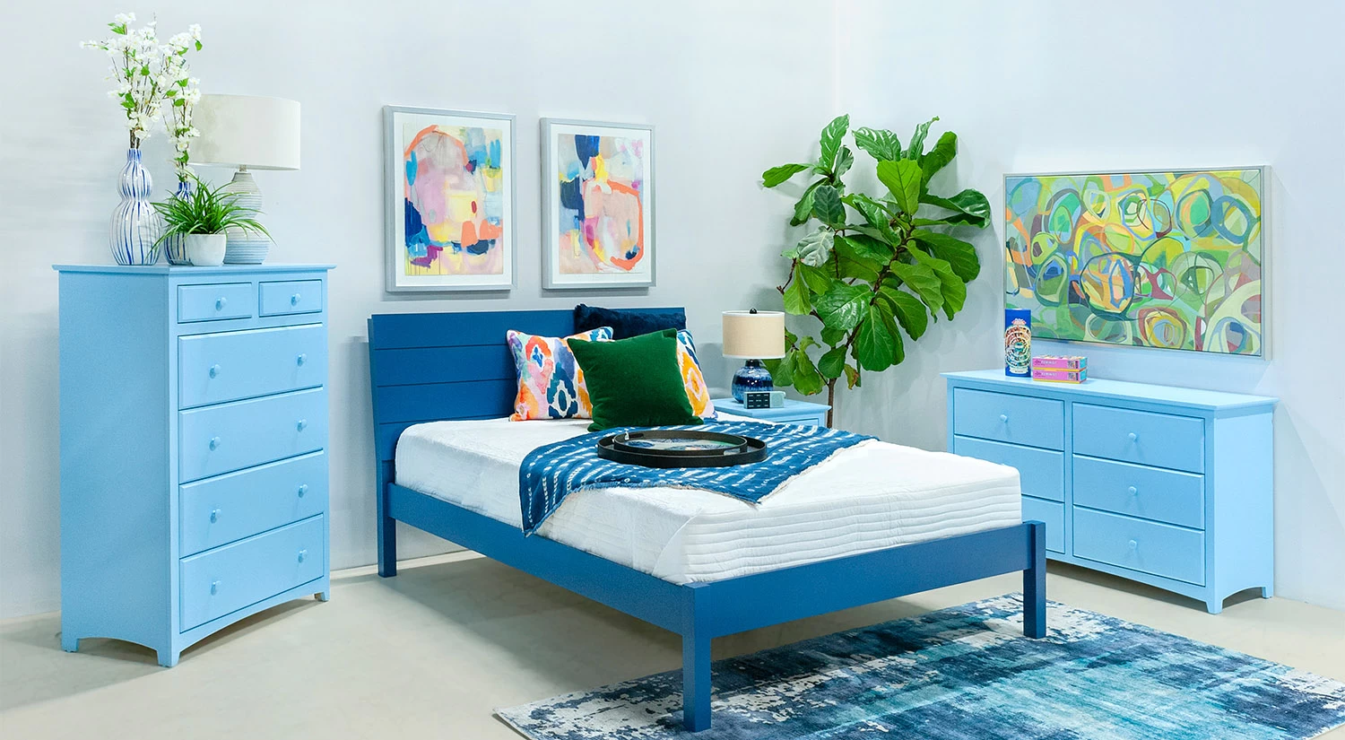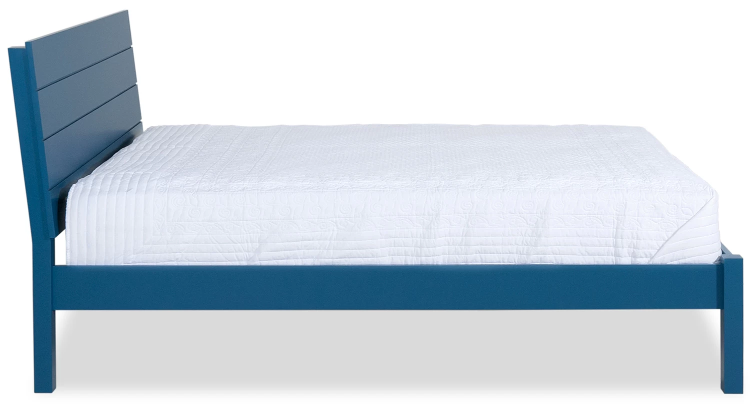 The Kendal Platform Bed has a simple design that’s characterized by a shiplap headboard. Its sturdy wood frame and a set of slats support your mattress so you sleep soundly at night, and it comes in a variety of paint colors so you can choose the perfect shade for your room.