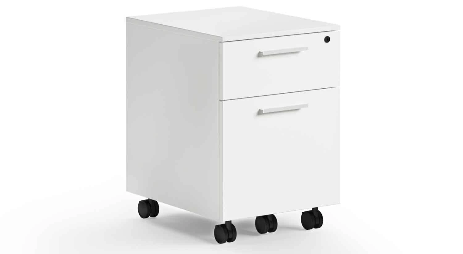 With the Linea Mobile File, you can stay organized and work efficiently. This two-drawer cabinet features locking wheels, secure storage, and an adjustable filing system. Its versatile design fits seamlessly underneath any Linea desk or functions as a compact printer stand.