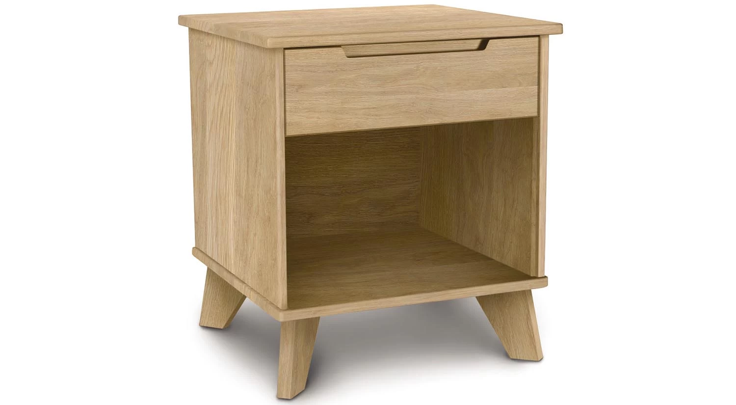 Copeland Furniture champions sustainable lumber and eco-friendly production. The Linn Night Stand is composed from solid oak hardwood and features a contemporary design and a beautiful natural & stained finishes. Also Available in Natural Walnut.