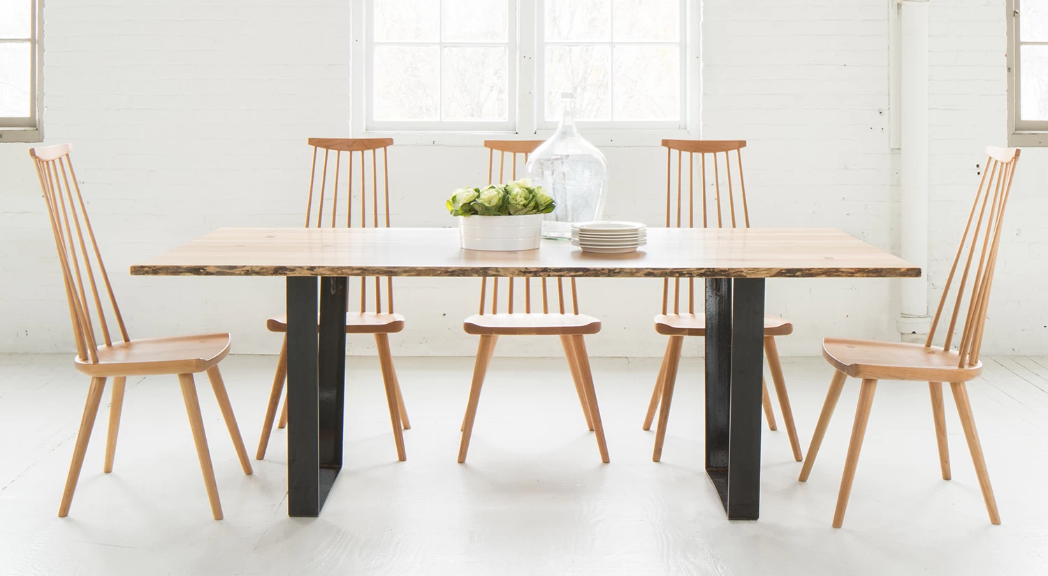 The Vergennes collection is where sustainable lumber and recycled steel meet to create an industrial theme that is truly stunning. These beautiful and unique tables are all one of a kind and sizes may vary due to the live edge.