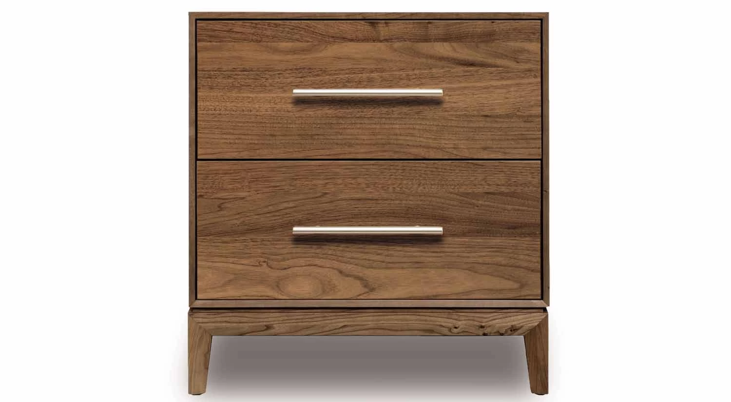 The Mansfield Collection from Copeland offers a sophisticated look with contemporary lines. Made from solid cherry or walnut hardwood in Vermont, it has soft close drawers with optional black bronze pulls on cherry wood case and long nickel bar pulls on walnut cases.