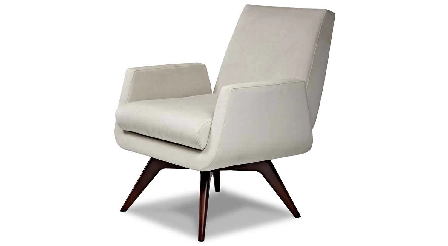 The Marshall Chair is a sleek, small-scale chair with a mid century modern style. The rounded wooden cross base features a memory swivel. Available in fabric, leather or Ultrasuede®.