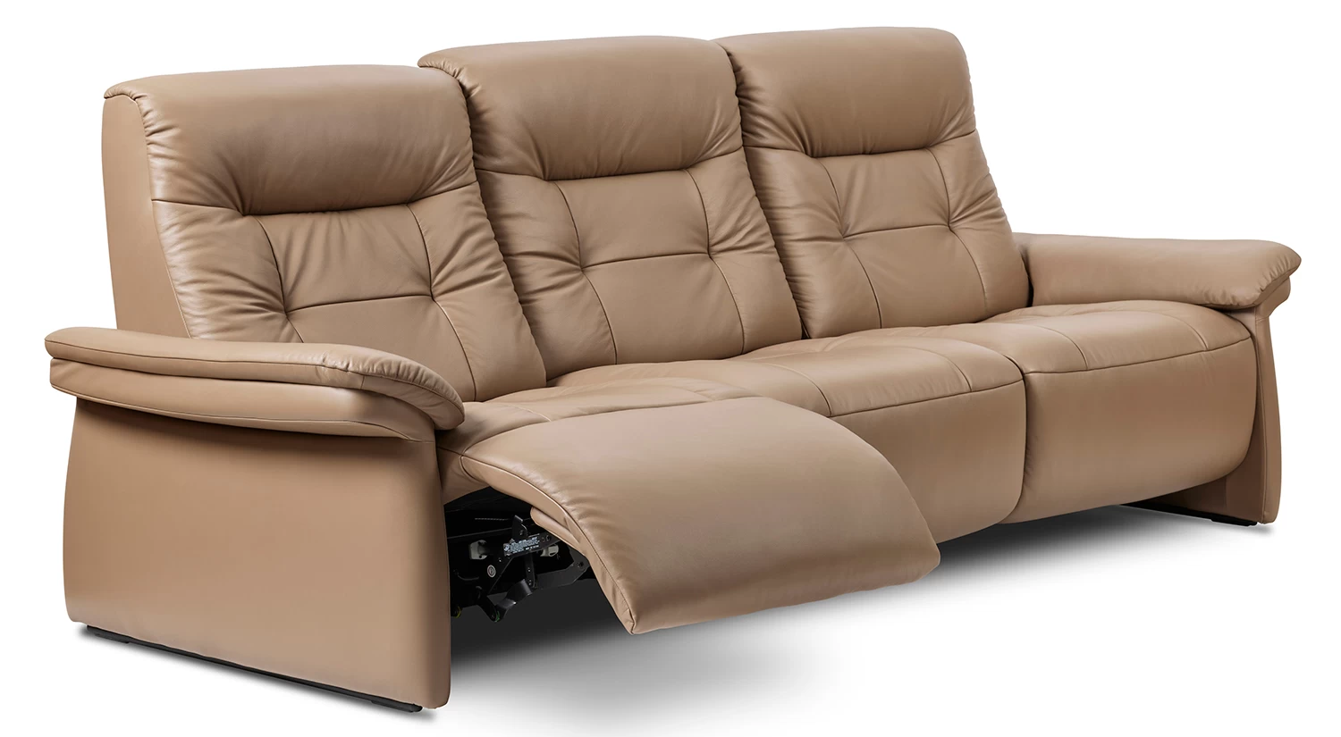 We offer the Stressless Mary as a sofa with power on both end seats, and power headrest for personal adjustment of back and leg support. Choose between a classic upholstered armrest or an armrest with wooden details for an elegant touch.