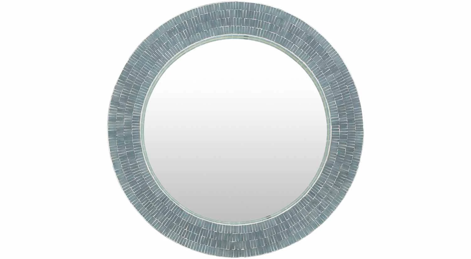 The Natalia Mirror will decorate any room or hallway with its understated beauty and coastal feel. Its round frame is detailed with an in-laid mother of pearl, giving it a soft, elegant sheen.