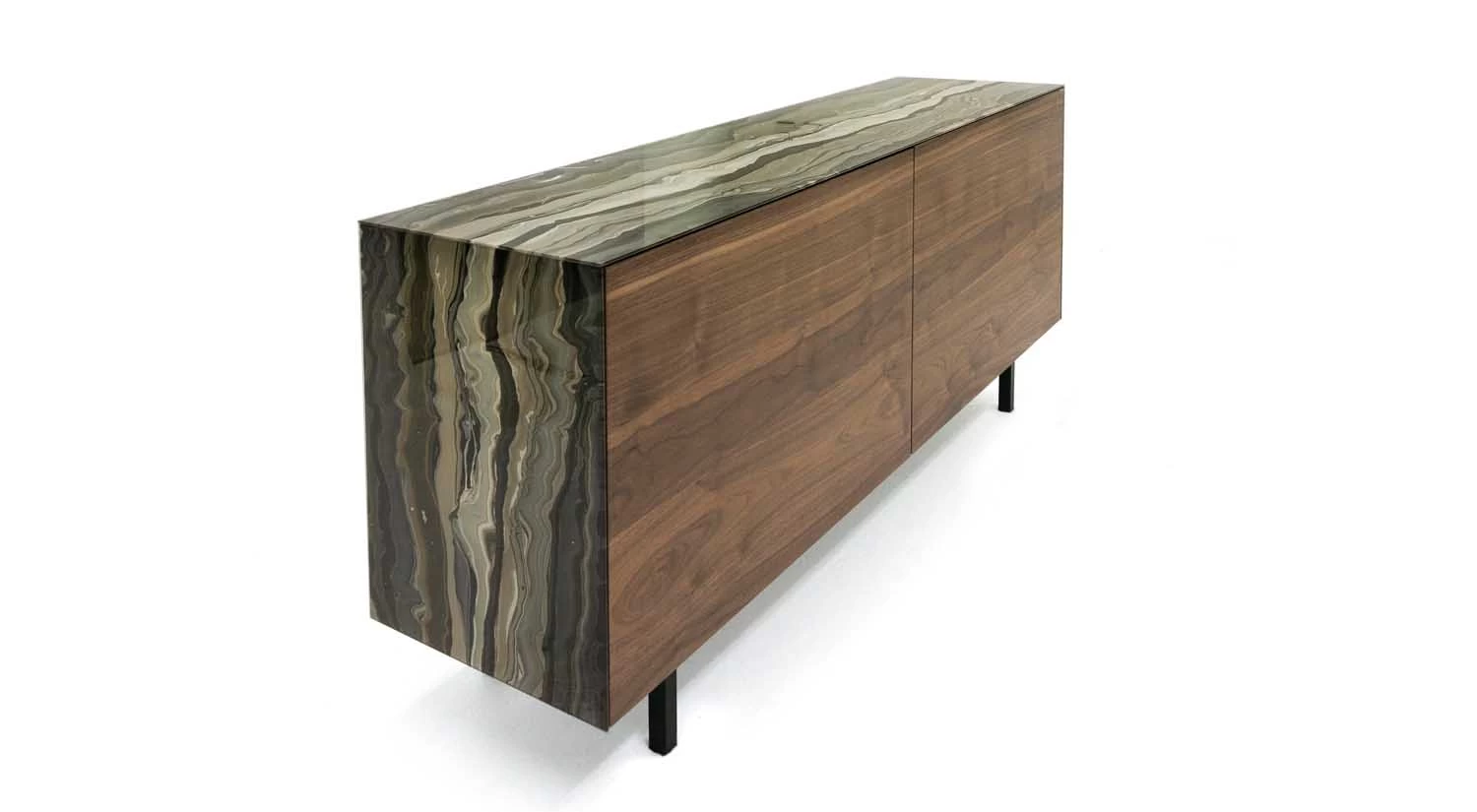 Shown in Stratum Terra glass and Soft Nogal wood finish.