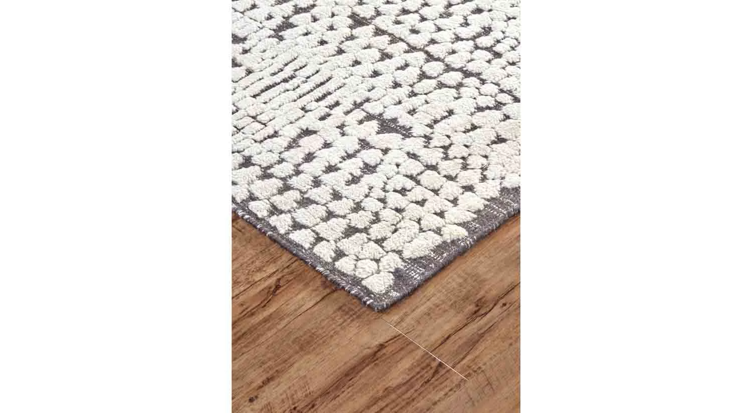 The Norah Ivory Charcoal Rug brings a striking look to modern spaces yet remains resilient against foot traffic. A three-dimensional design gives the rug texture while its neutral color scheme features shades of charcoal and ivory.
