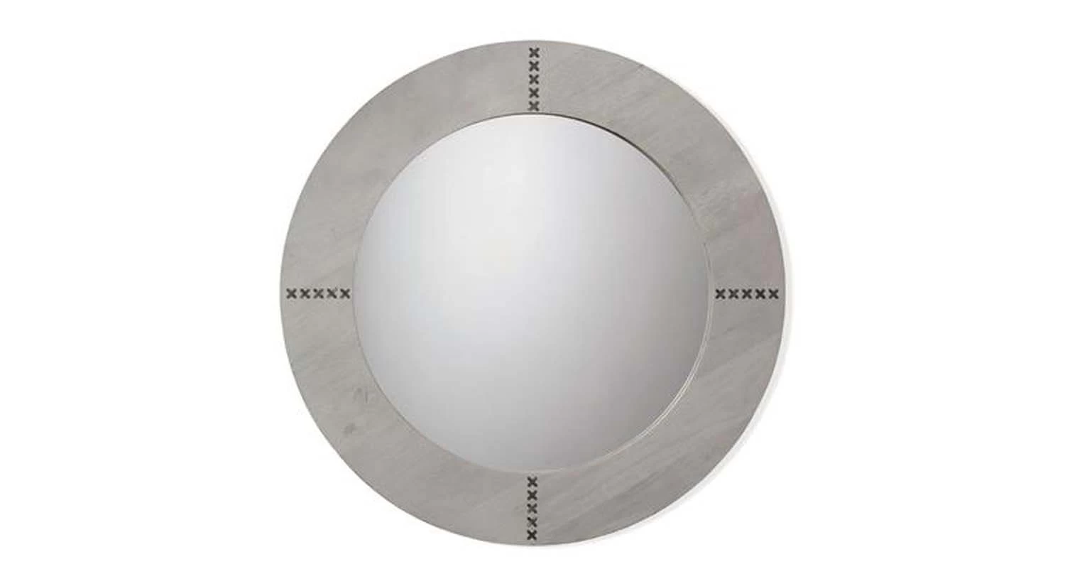 The combination of gray and silver on a round frame helps the Owen Mirror achieve a sleek, polished look. Crosshatch metal inlays give it the right amount of detail and contemporary edge without taking too much away from its simple design.