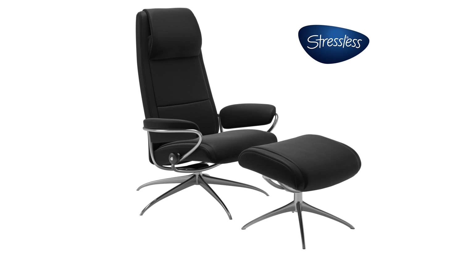 The Paris Stressless Recliner features a vintage-inspired design and a star base. Each chair uses the BalanceAdapt system, which enables a swivel, rock, and recline motion.