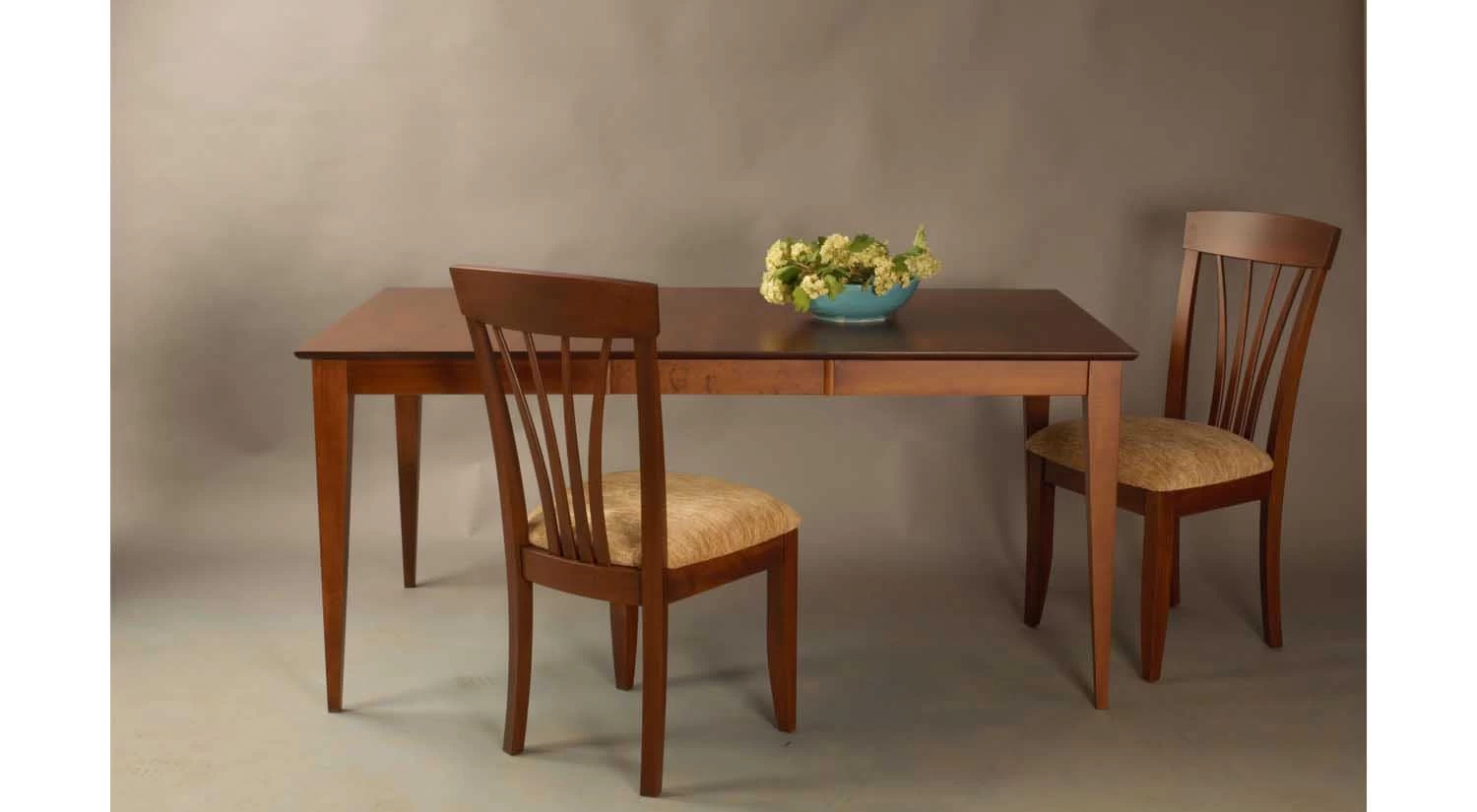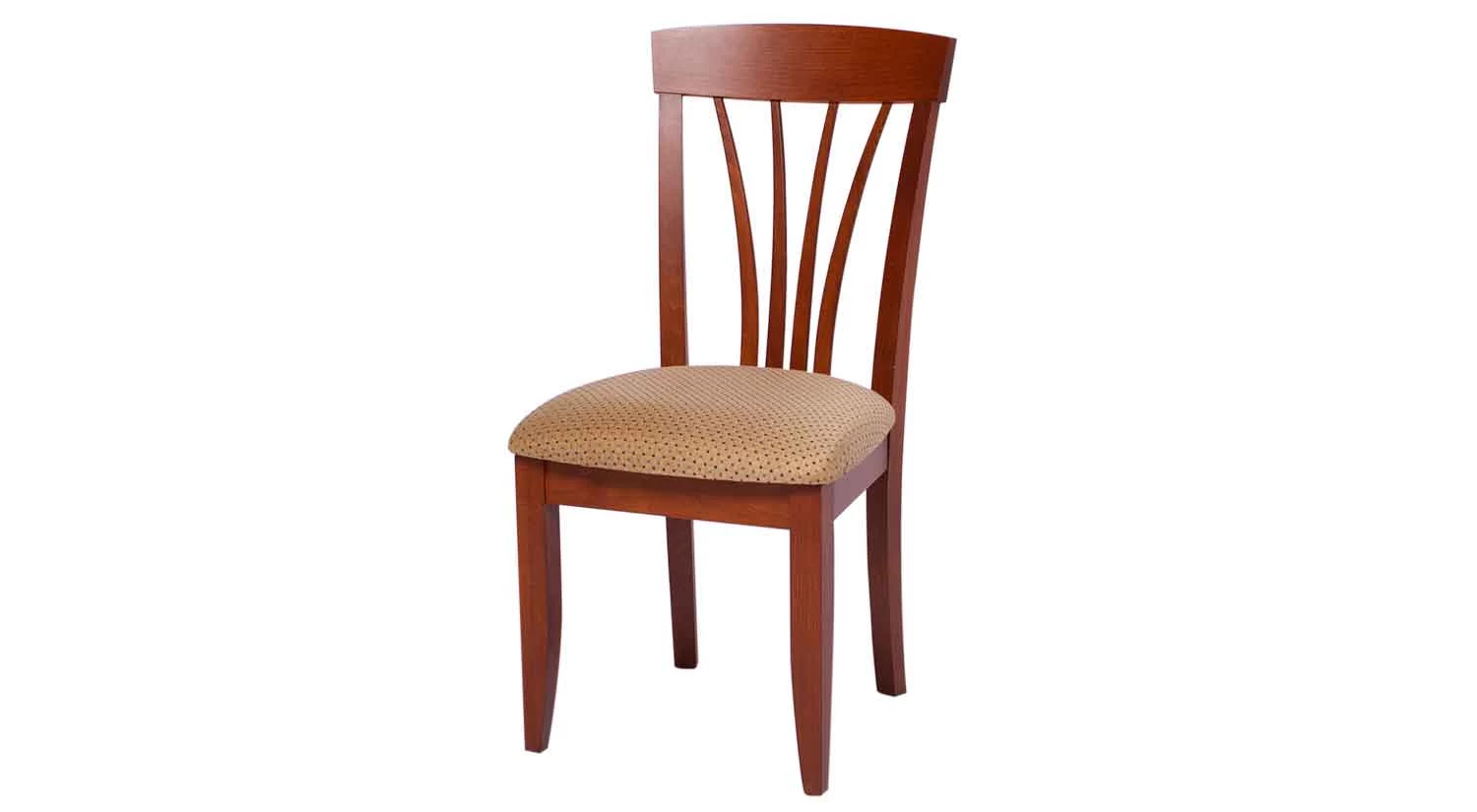The Parker Dining Chair is available with an upholstered or wood seat.