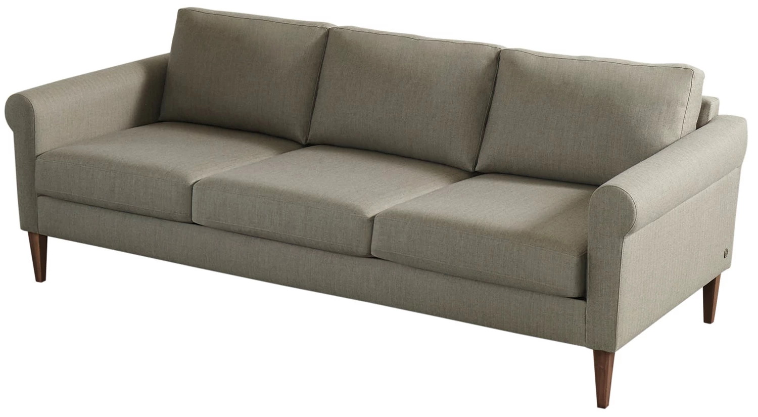 We’re offering the Personalize Collection Sofa online with a rolled arm and wooden legs. We also offer the entire fabric and leather collection from American Leather in our showrooms, so you can design the sofa you want in the perfect color as well.