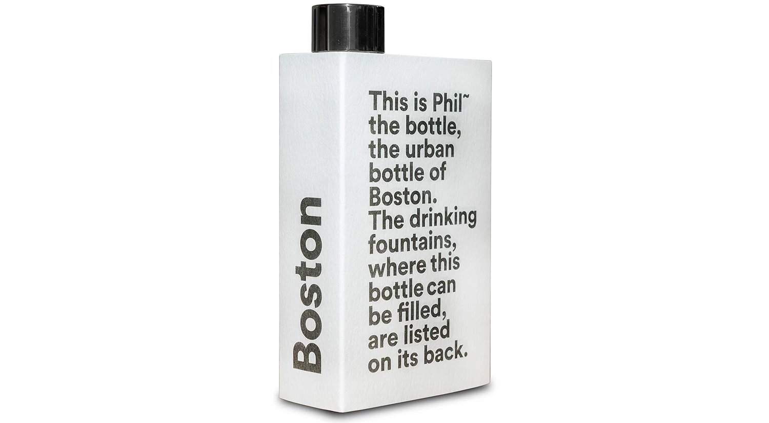 Phil the bottle is a recyclable bottle that lists free water offered by drinking fountains found in parks, gardens, squares, and streets in the city of Boston. BPA free.