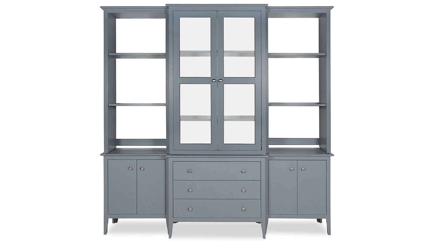 The Portsmouth Wall Unit is made from birch wood and available in many finishes and configurations. Create your own for optimal storage and design.