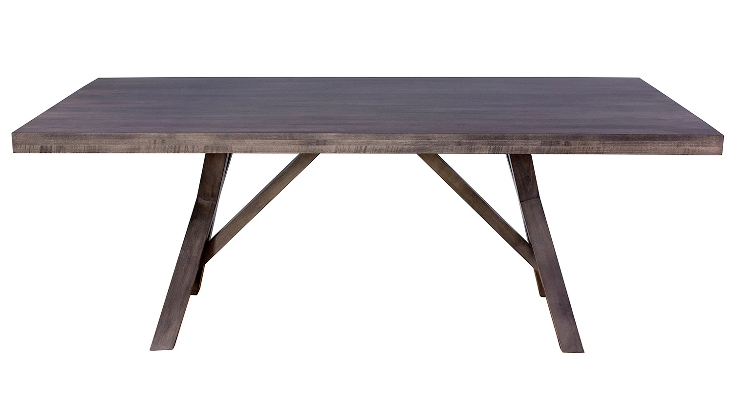 The Quincy Dining Table has contemporary base with metal accents. We’re offering it online with the Mondo Top, which measures 2.25in thick!