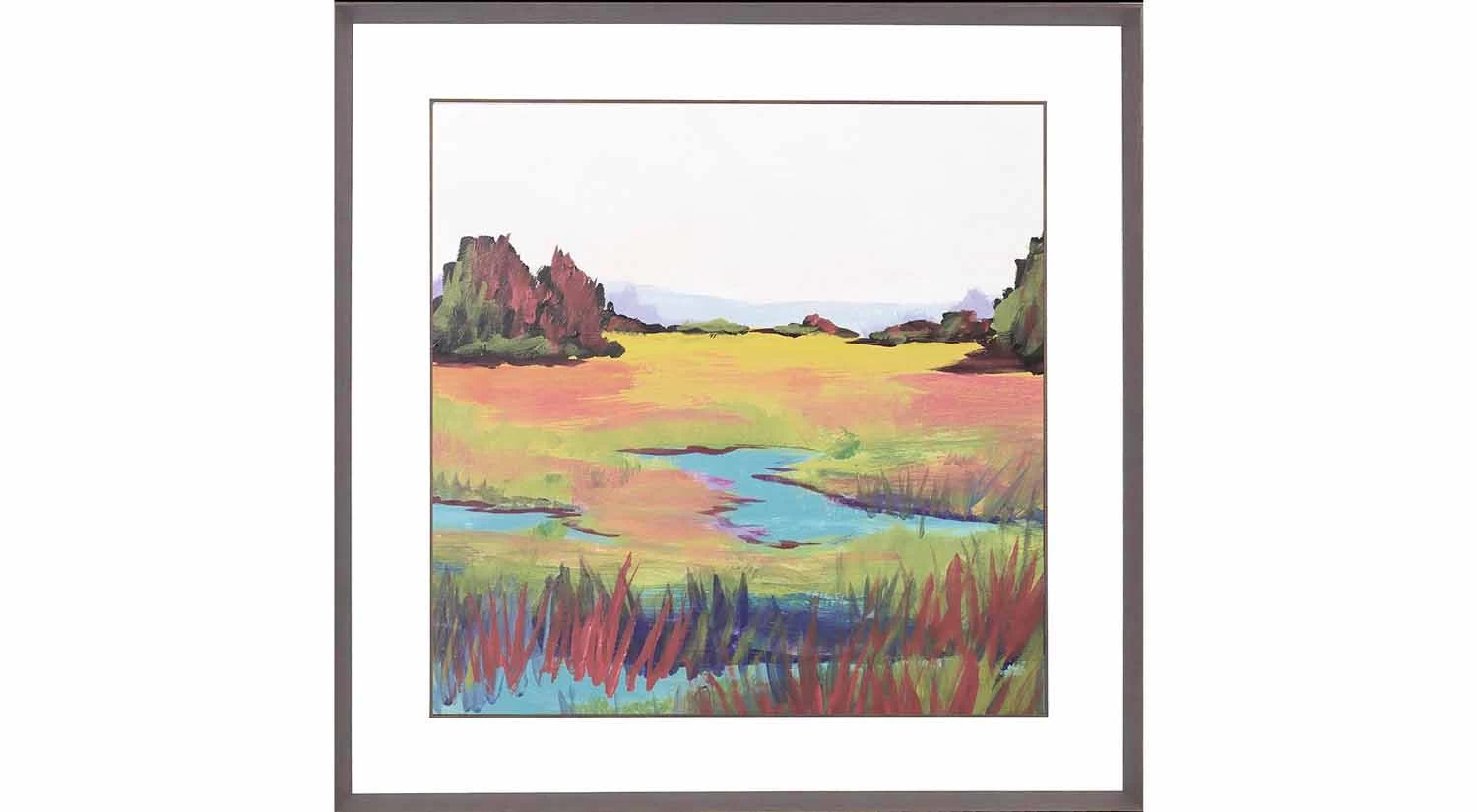 The beautiful painting Redstone 4 takes you to a quiet field beside a flowing river, the perfect place to sit in stillness.