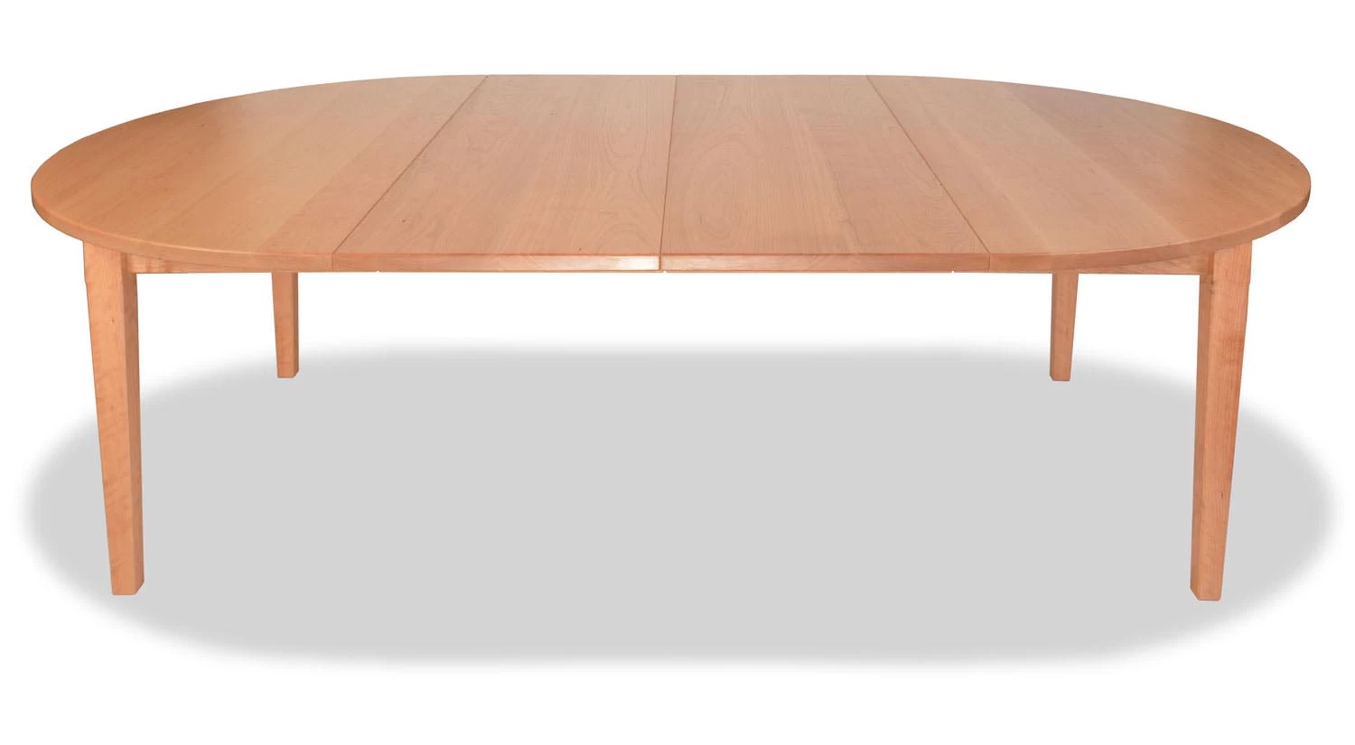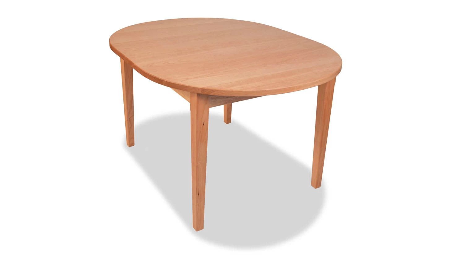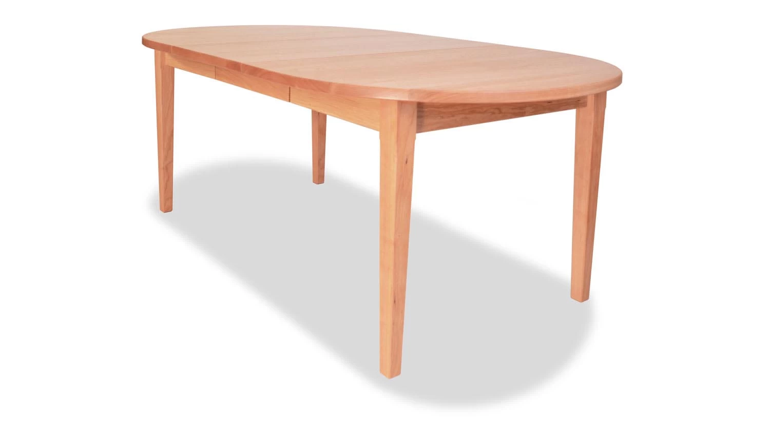 The Round to Oval Table with taper legs by Maple Corner is made from solid woods and handcrafted. Each piece of wood is hand-selected in order to design a consistent and beautiful piece.