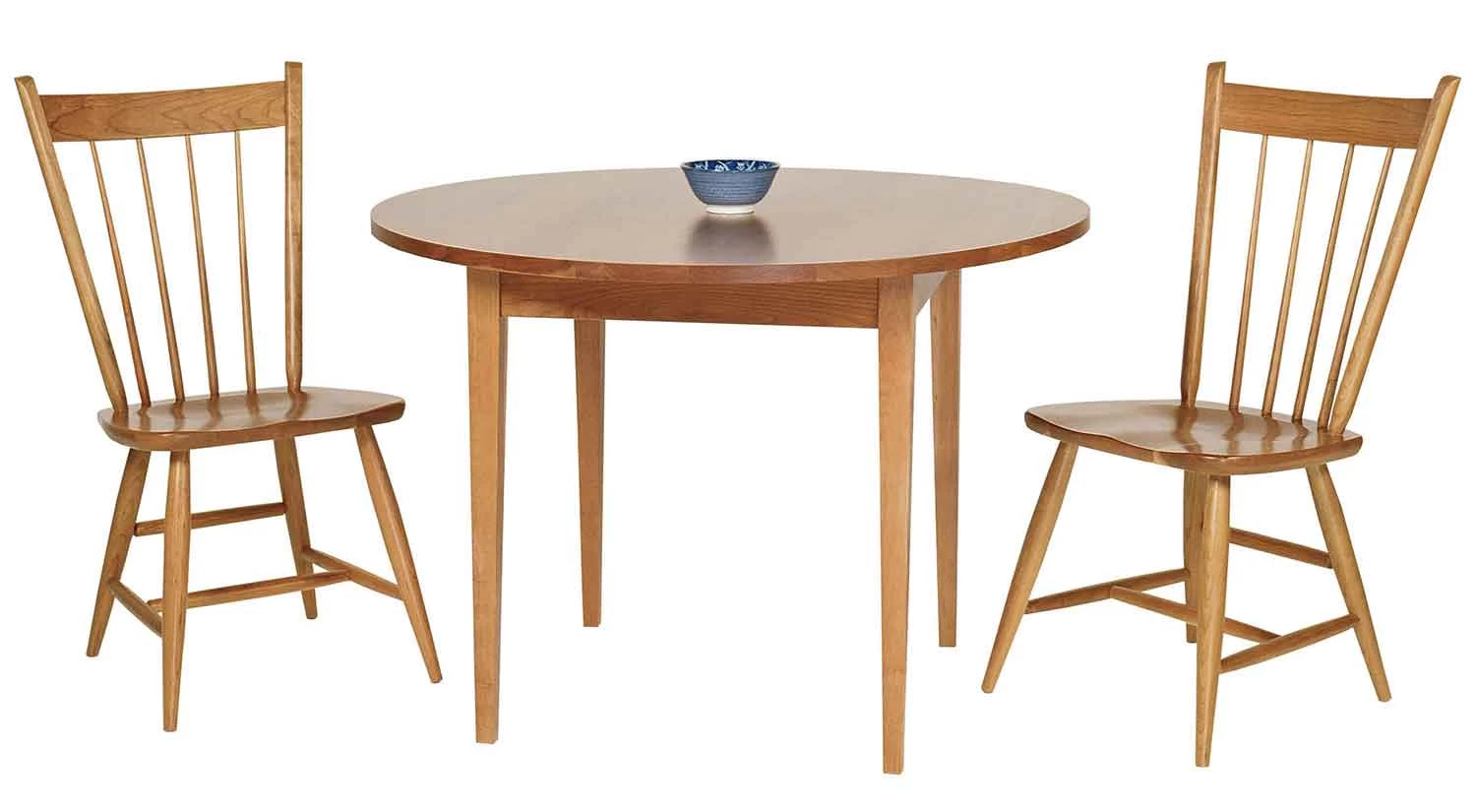 The Round Taper Leg Table is a classic design. This table is made in Vermont and available in gorgeous cherry or maple wood in a variety of finishes.