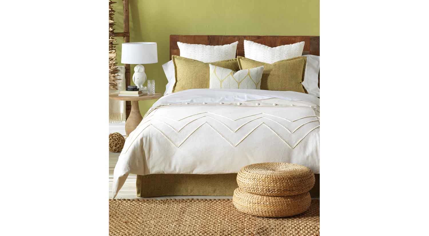 Front: Botanical green leaves on fabric face.