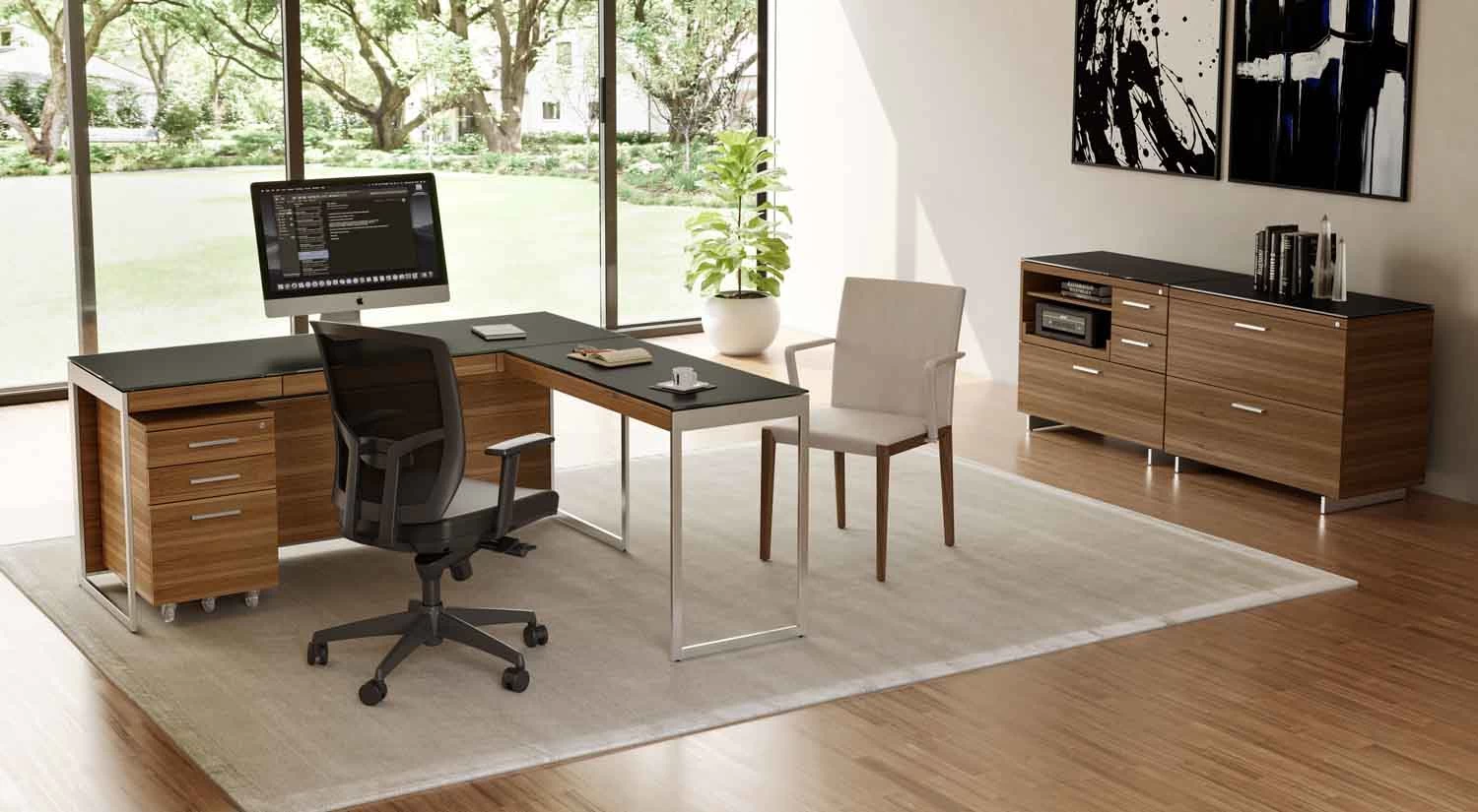 The Sequel 20 Desk by BDI features a sleek design with a satin-etched glass top and superior wire management system. Keep your workspace organized with the keyboard/storage drawer. Combine the desk with other Sequel 20 products to customize the perfect home office.