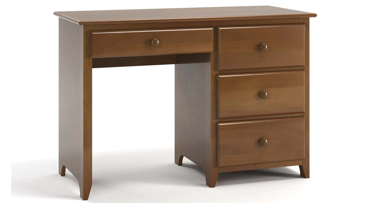 The Shaker 4 Drawer Desk has three equal size drawers that can be either on the right or left side, with beadboard detail on the sides gives this desk a Shaker feel.