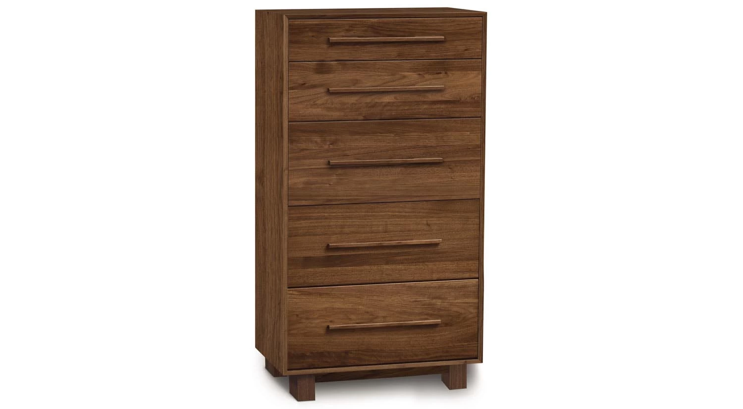 The Sloane 5 Drawer Narrow Chest features soft-close drawer glides.