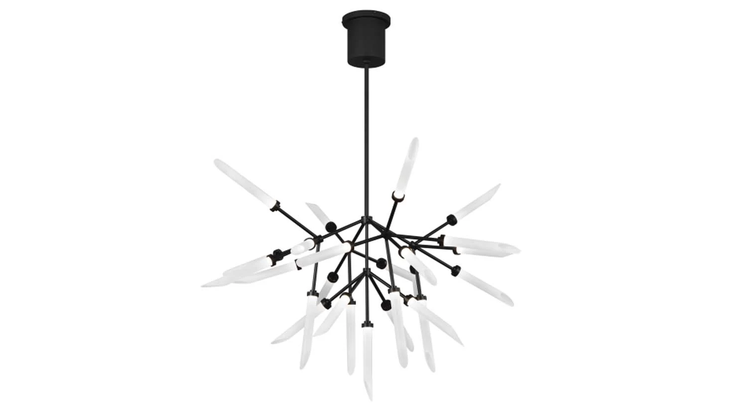 The Spur Chandelier makes a dramatic statement from every angle, elevating any living room, dining area, or entryway. It features nine arms with clusters of glass spurs placed in varying directions with dimmable LED lighting to help create your ideal ambiance.