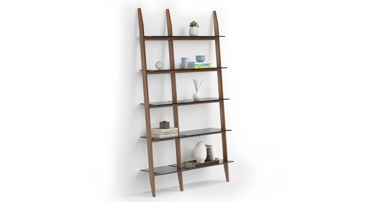 Stiletto Leaning Shelving has a minimalist yet timeless look with plenty of display or storage space. It rests elegantly against the wall, whether in your living area or home office, with leveling points to ensure it’s secured in place.