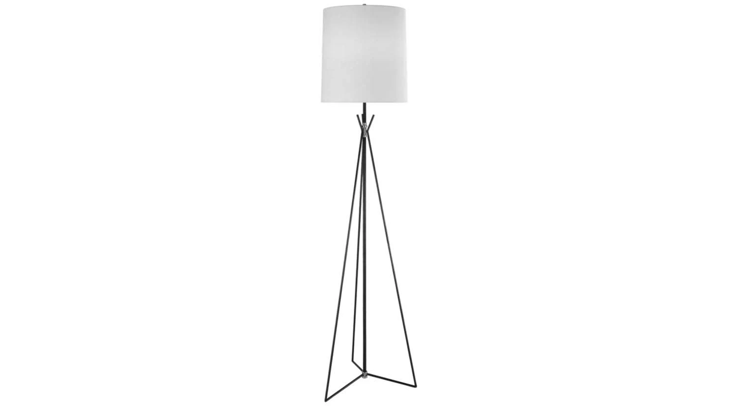 The Tavares Large Floor Lamp stands on a tripod base that gives this fixture it’s notable look. It has an aged iron finish with a classic drum shade on top to complete its clean design.