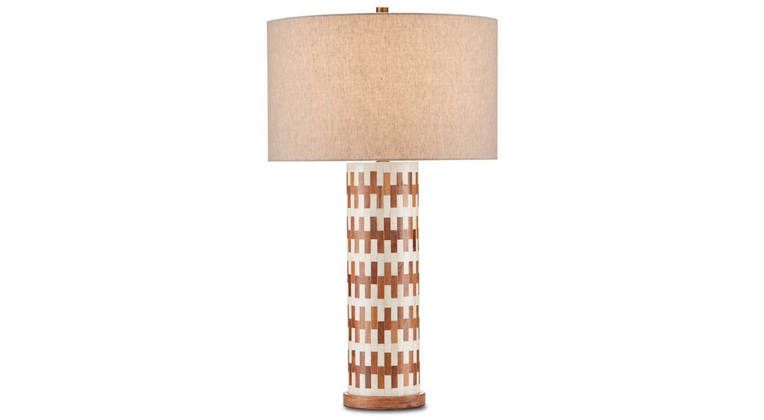 Between its striking pattern and sense of warmth, the Tia Table Lamp is a chic addition to your decor. Other features like its columnar body, drum shade, and natural materials give this fixture a sense of style that displays beautifully on any accent table.