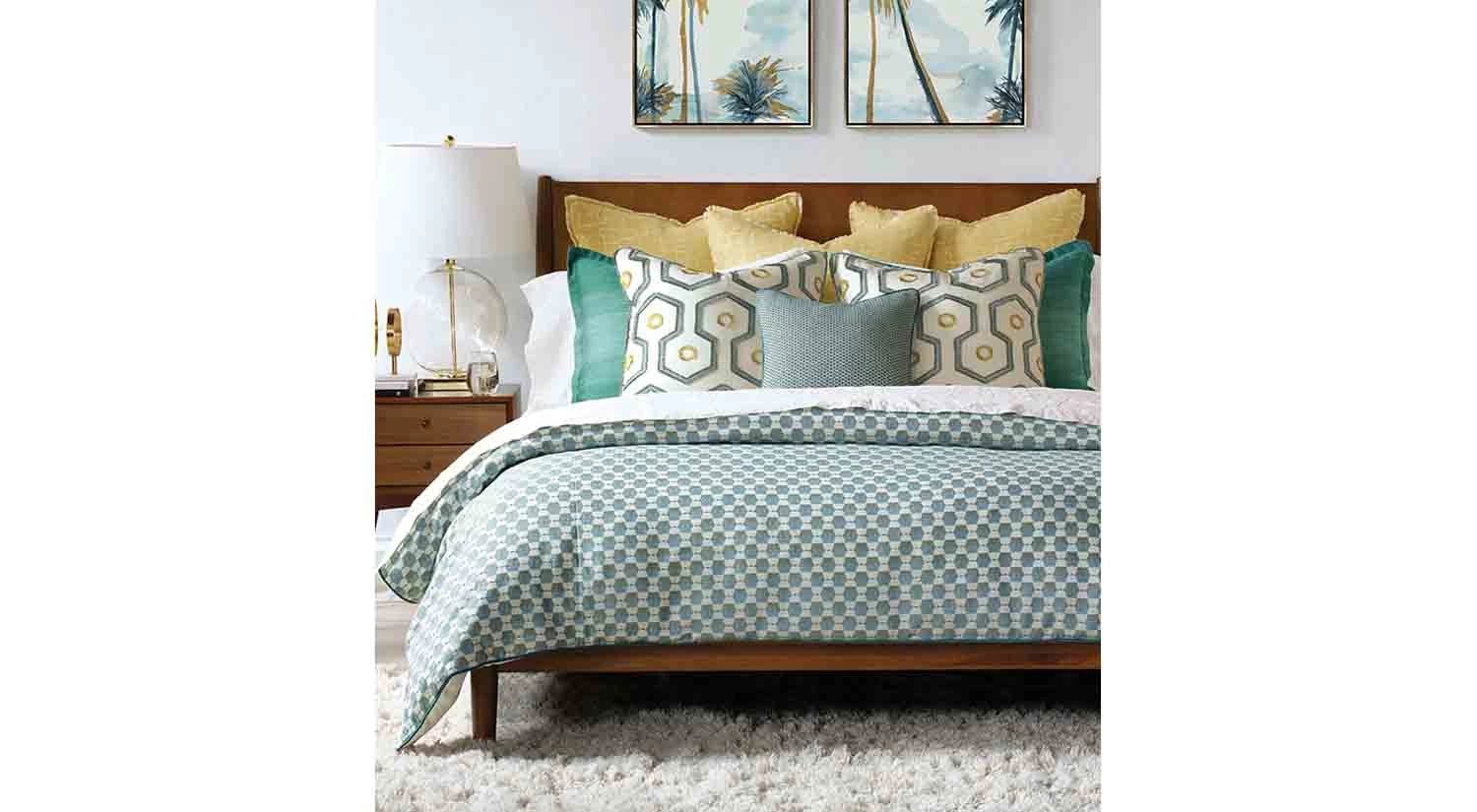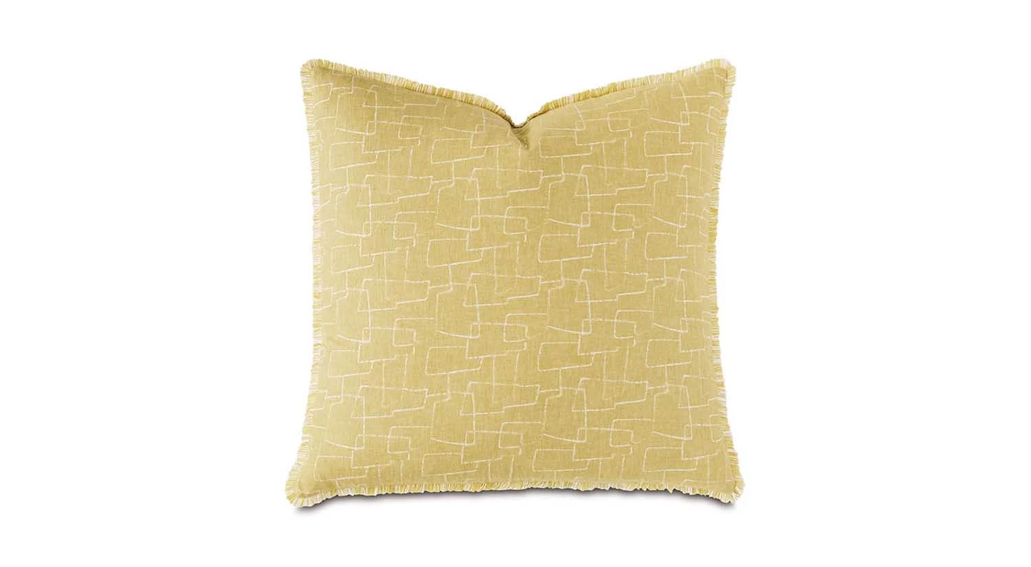 Spruce up your decor with the Twin Palms Euro Sham with Fringe. It comes in a beautiful shade of yellow, decorated with fringed edges and a retro pattern for added flair.