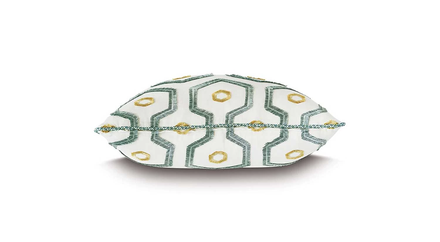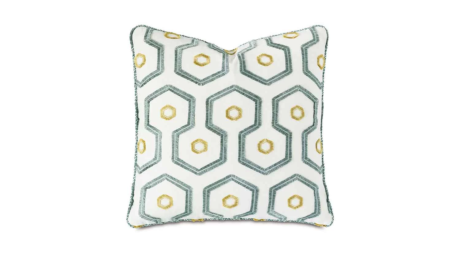 Spruce up your decor and bring in some fresh color with the Twin Palms Square Decorative Pillow. It features a geometric pattern in teal and yellow with a brush fringe for texture, perfect for the spring and summer seasons.